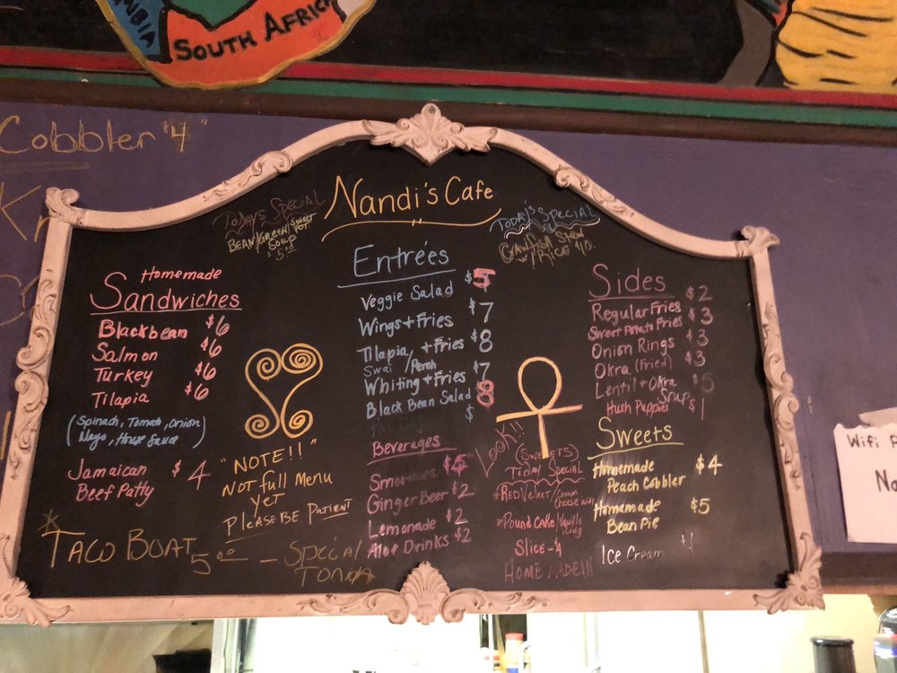 Nandi's Knowledge Cafe is a place where like minds meet. It is a potpourri of information and a warm, cozy place of intellectual exchange and knowledge. There is a large collection of African American books in every subject, with books everywhere and African art all around. It features a great lecture and event space. The atmosphere is relaxed, chill, laid back, and safe, with a vibe that makes people feel love and community. Visitors can enjoy good food for the soul, responsible drinks, and a nice patio. There is also an awesome vintage store. The establishment hosts local talent, such as poets, and fun events, with Saturday nights being particularly bomb. It is an overall great experience where people feel they have found their people.
