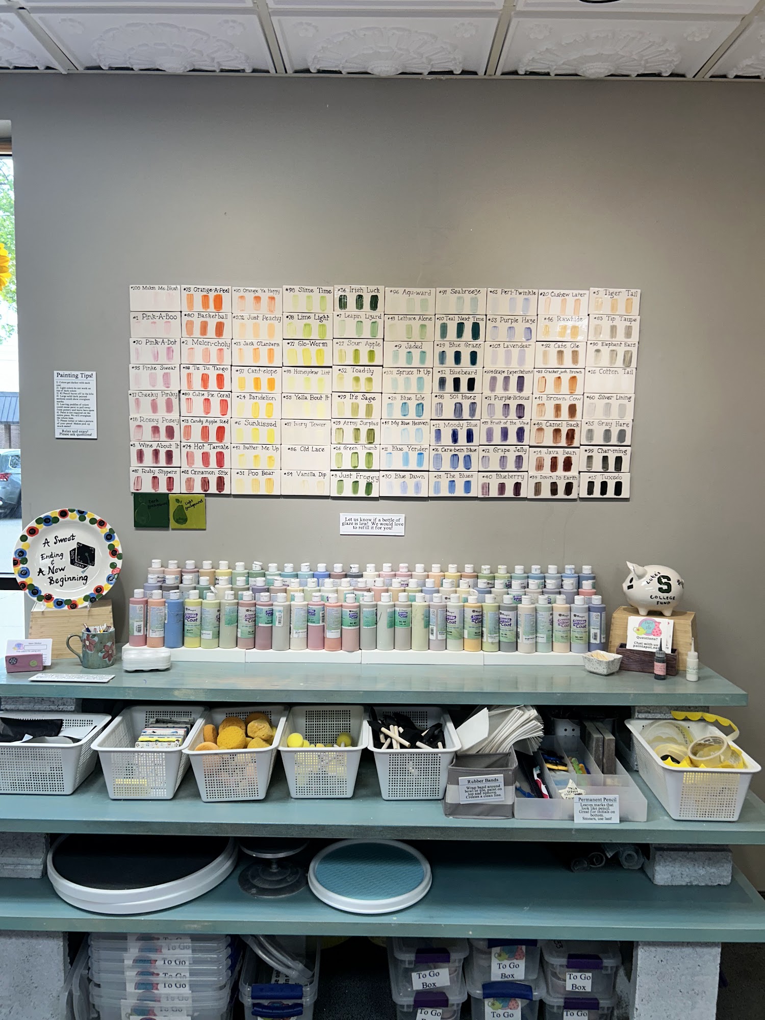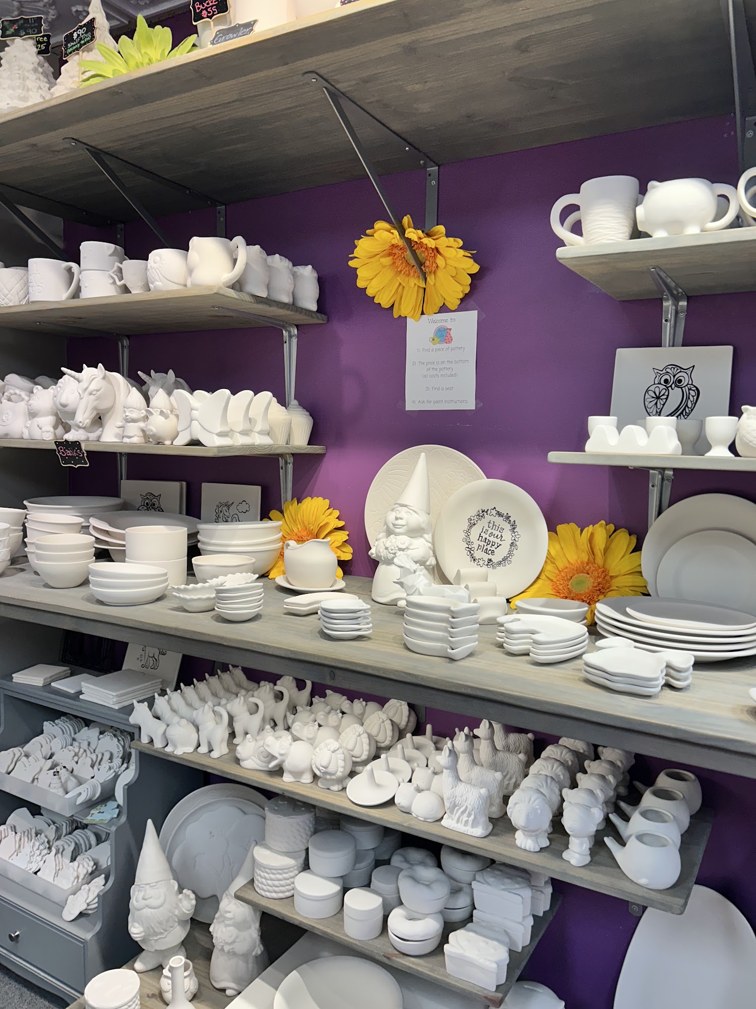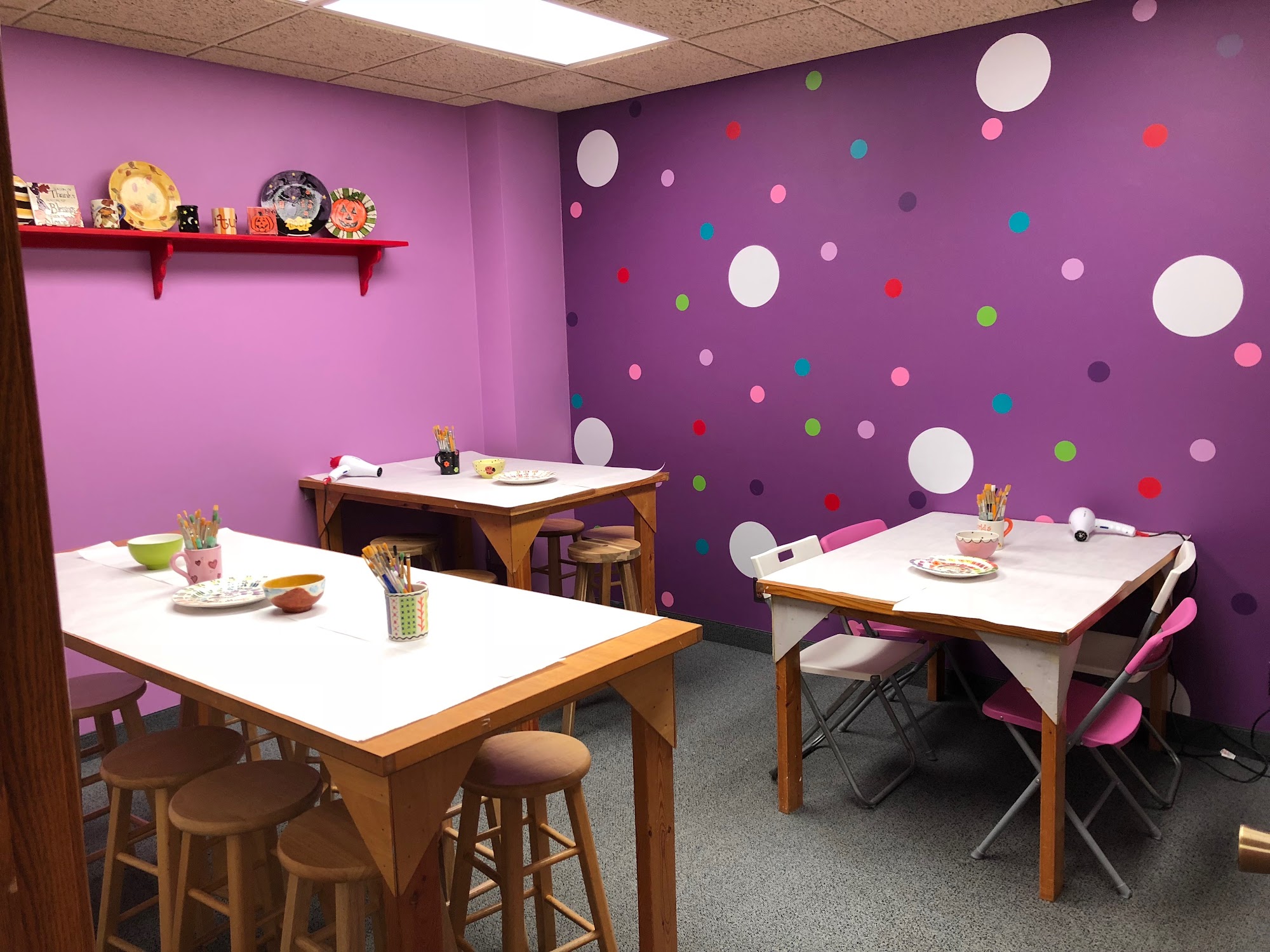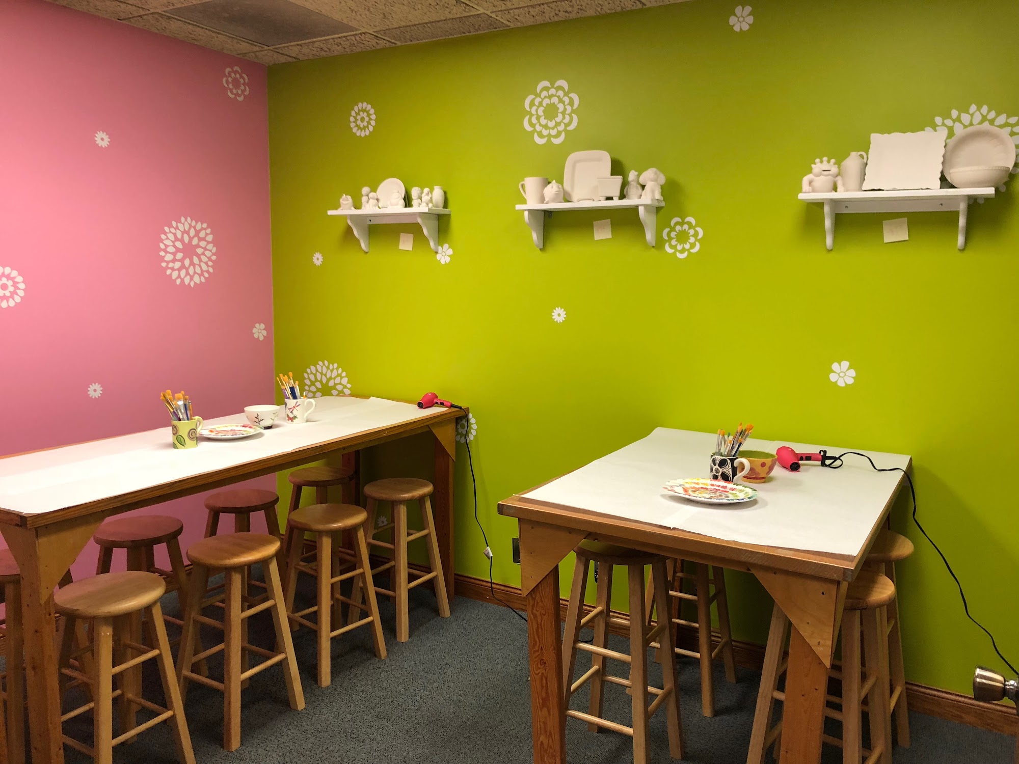 Incredibly fun and relaxed atmosphere! There was a great selection of items to choose from as well as paint colors. All of it was set up nicely and explained thoroughly. The owner was helpful and attentive. It was nice just to be able to walk-in, enjoy painting and be on our way. Fantastic way to spend an afternoon!