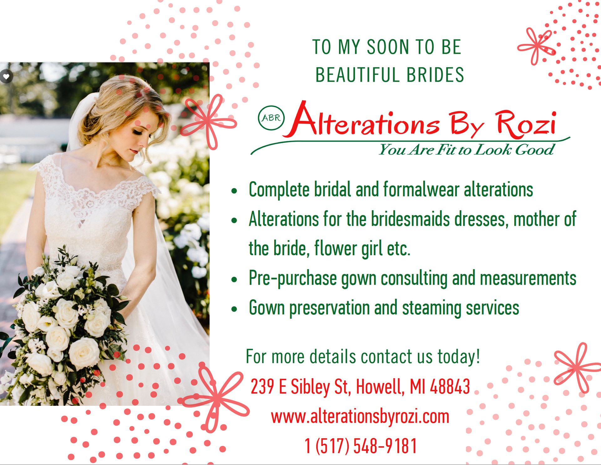 This review is a long time coming. Our daughter got married back in 2020. Rozi was one of the places recommended by the store where our daughter purchased her wedding dress. We cannot say enough about the quality of work, friendliness, professionalism, and dedication of the owner and staff. Extremely satisfied.