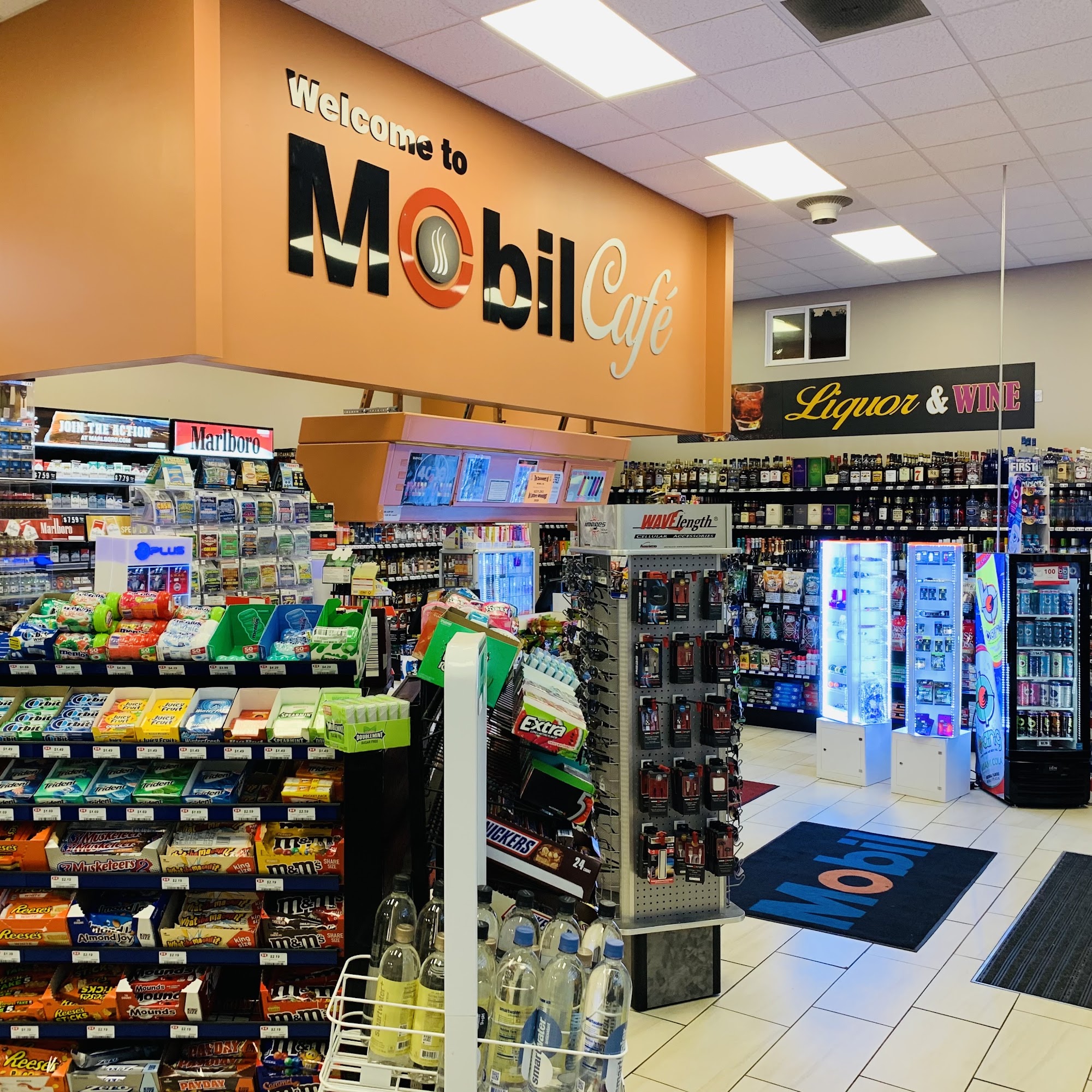 Mobil is a convenient and welcoming business that offers a variety of products and services. Customers appreciate the friendly staff, especially one employee who is known for being down-to-earth, welcoming, and always smiling. The store provides a wide selection of items including drinks, snacks, liquor, cigarettes, vapes, lotto tickets, and THC products. It is also known for having fresh food, hot coffee—particularly a popular caramel cold coffee—and a clean, quick service environment. Many customers travel extra miles just to shop there, valuing the helpful staff and the availability of everything needed on the road, from candy bars and phone chargers to tobacco pipes. Overall, Mobil is praised as a friendly, clean, and well-stocked spot.