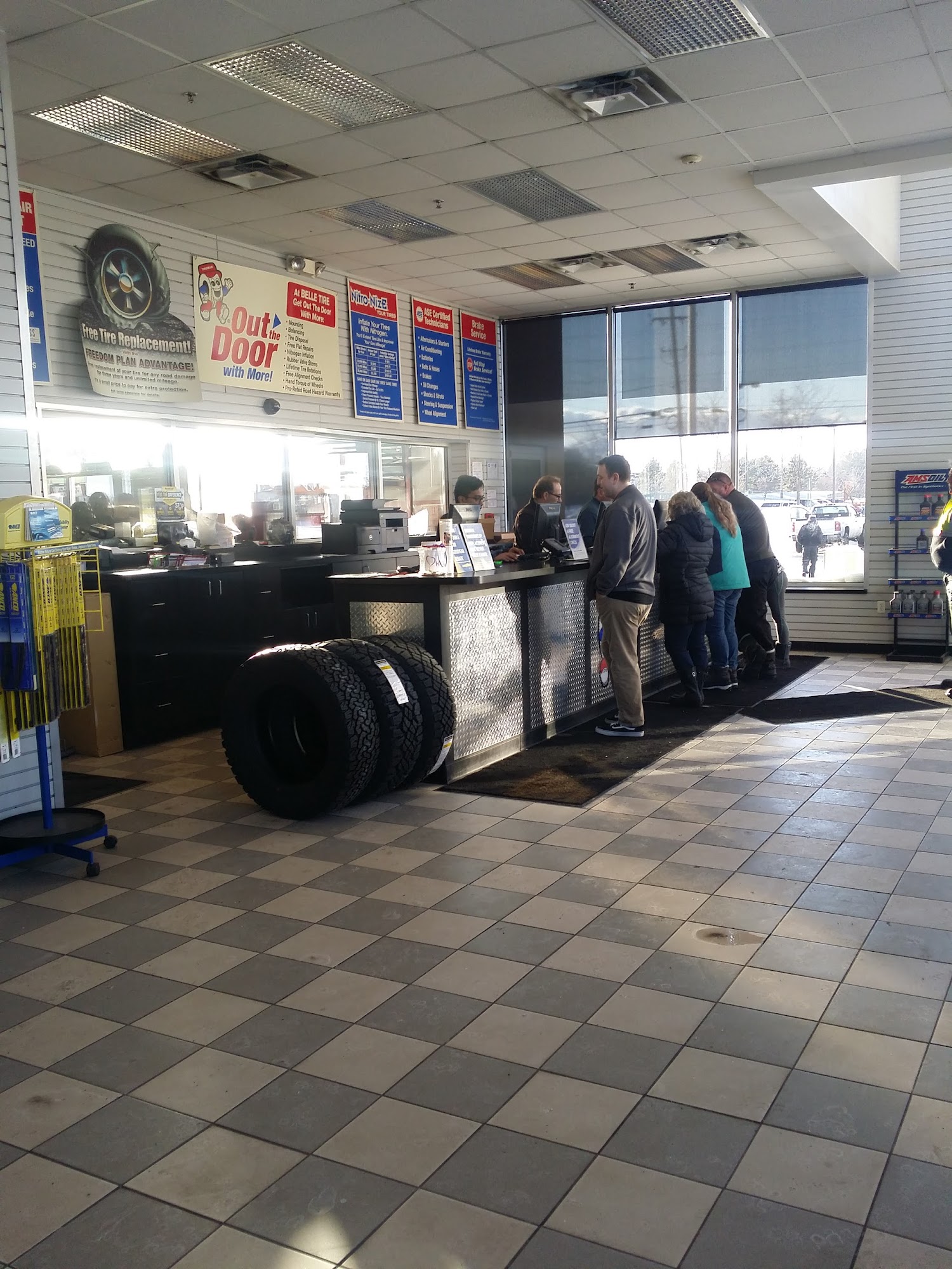 Belle Tire offers a vast selection of over 250,000 name brand tires, from everyday to performance and off-road, at the lowest tire price, which they price match. All tire purchases come with a lifetime of free perks including mounting, rotations, balancing, alignment checks, and flat repairs. The staff is frequently described as friendly, informative, patient, helpful, kind, honest, and inspiring. Customers report great experiences with both quick emergency work and longer appointments, noting the work is done in a timely manner and affordably. Many highlight receiving helpful, honest service and even occasional free work. While service is generally okay or amazing, some note that communication regarding wait times could be better. Overall, customers highly recommend Belle Tire, stating they will definitely be back and will recommend them to others for getting great value and getting back on the road fast.