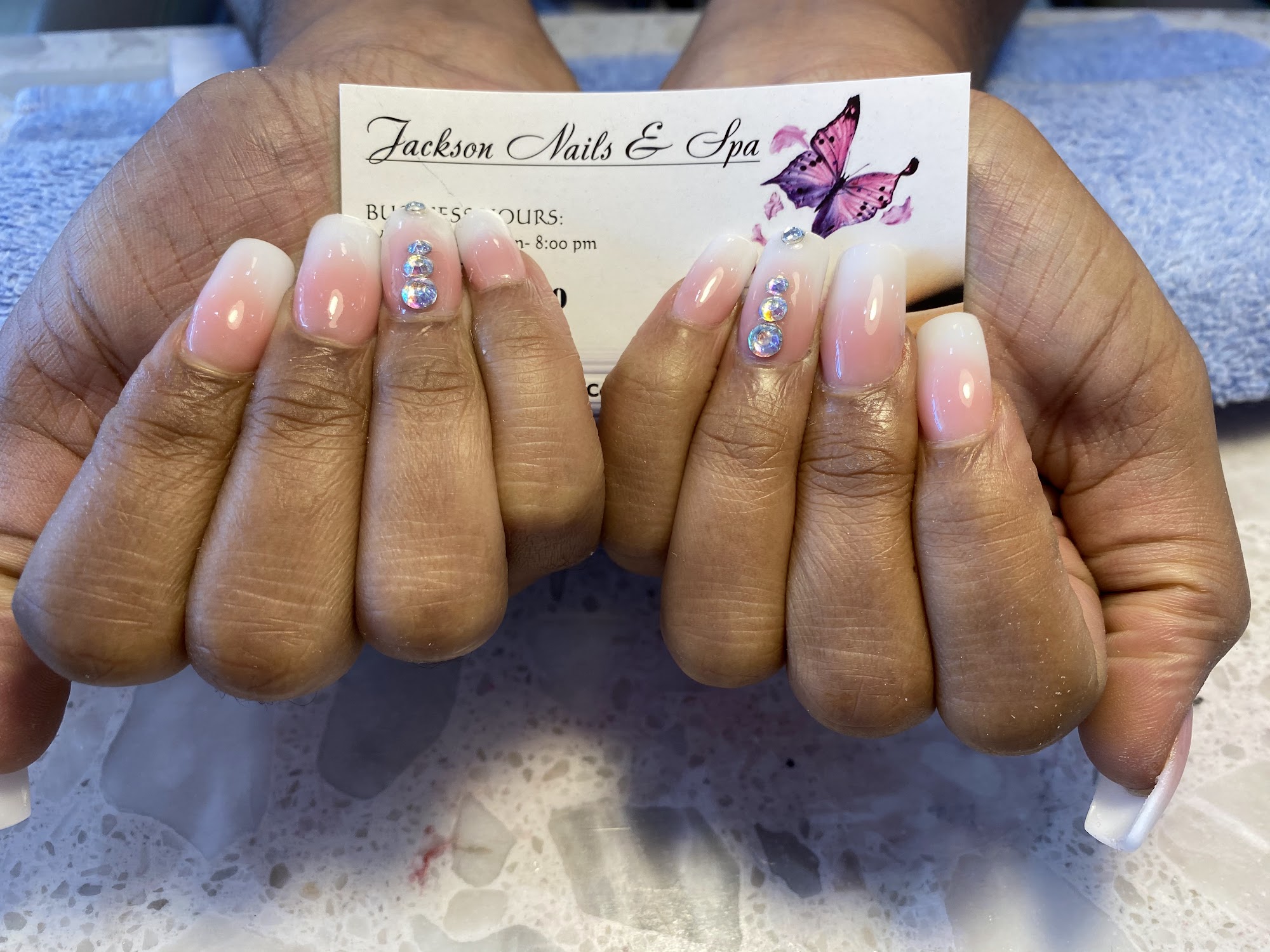 Jackson Nails & Spa is praised for its friendly atmosphere and excellent service. Customers appreciate flexible appointments, with one person receiving a full set of nails just 15 minutes after calling. The staff is described as attentive and detail-oriented, ensuring nails look great with smooth edges and no leftover polish on the skin. One client noted a special connection made during their visit, highlighting the personal touch in service. This salon does a great pedicure & manicure. Customers can get last-minute appointments, with one person fitting in a late appointment after 6. The salon is a great first experience, with customers going back for fills and being taken back right away. Nail techs check with customers to make sure they like the length, color, shape, and price. They are quick, kind, and do a great job. Customers are happy with the outcome and receive compliments on their nails. The woman who waxed eyebrows also did an excellent job. Anna is amazing, taking her time and paying attention to detail. Both visits were positive, and customers will continue to use this salon. The price was also reasonable.