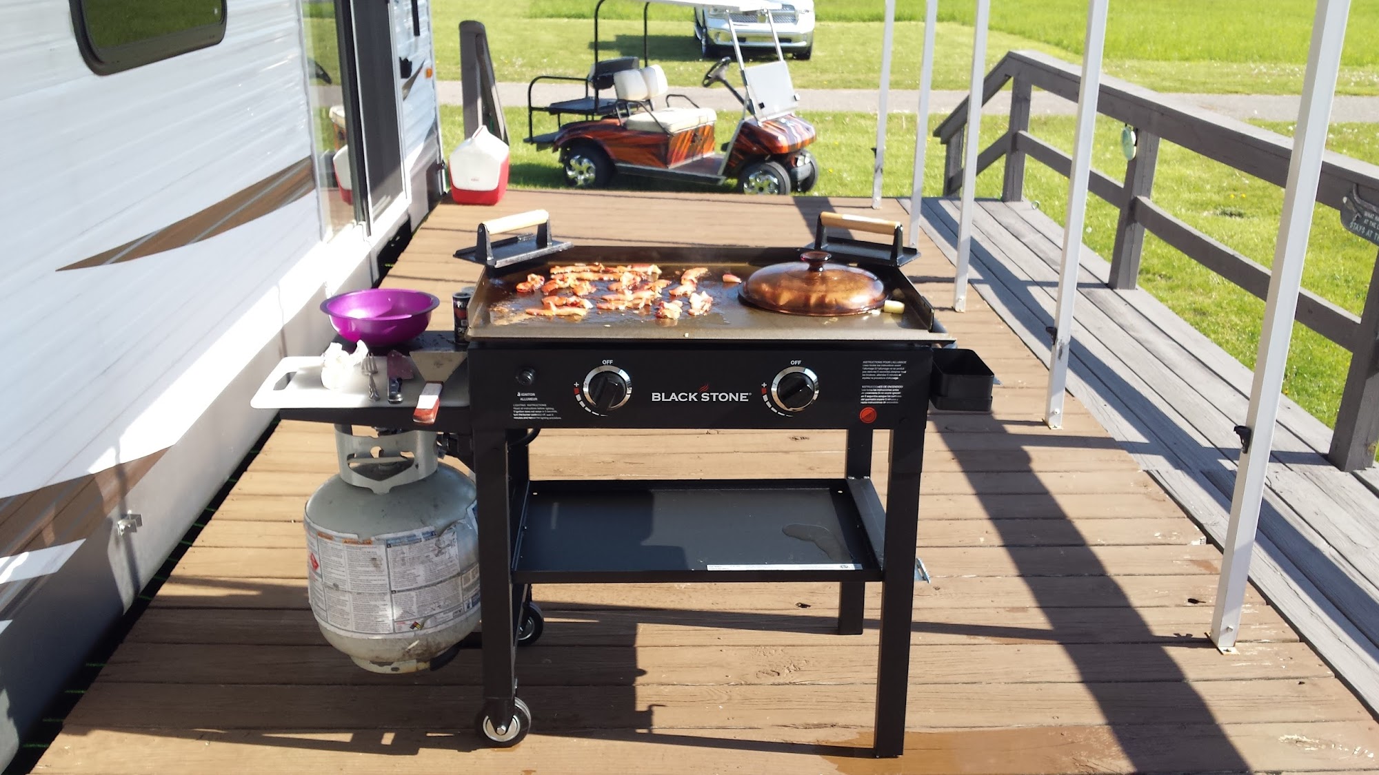 On site camp store. Usual camp items such as bread, milk and basics.