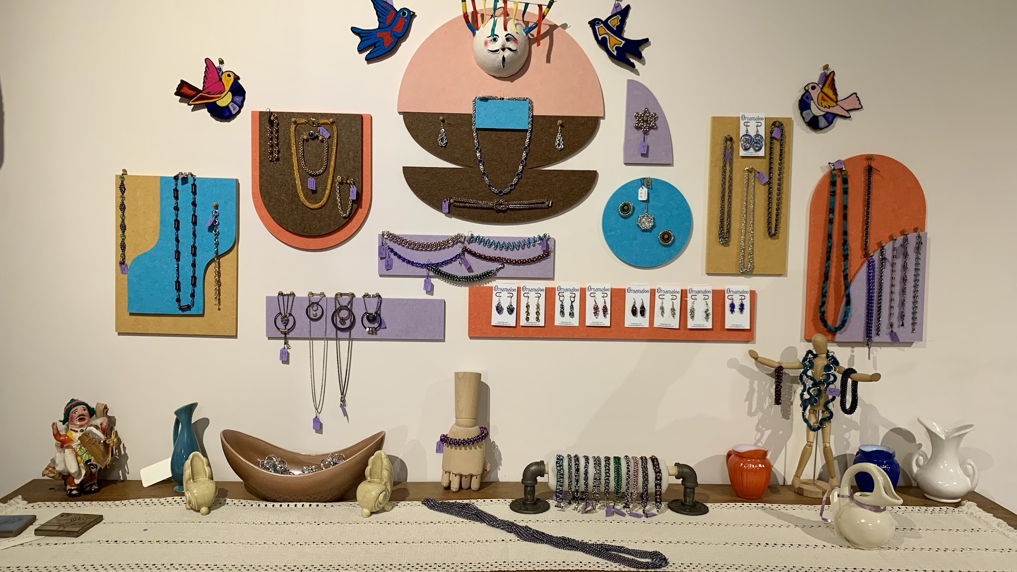 Ornamaloo, a boutique which offers a unique blend of handcrafted jewelry made using historic chainmaille techniques and modern materials, alongside a curated collection of vintage pottery and woolen accessories. The store also showcases a collection of Peruvian cultural artifacts, hand-selected by a passionate architect who aided in reconstruction efforts after earthquakes. New discoveries continue to be unveiled as the collection is unpacked.