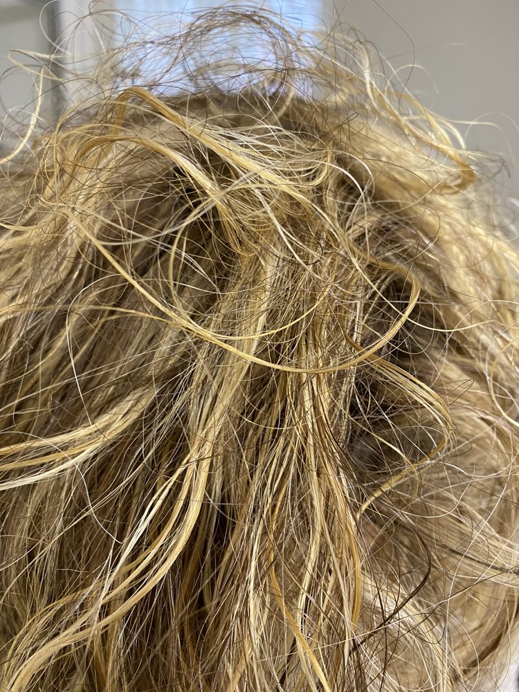 Hair type: Natural straight blonde hair