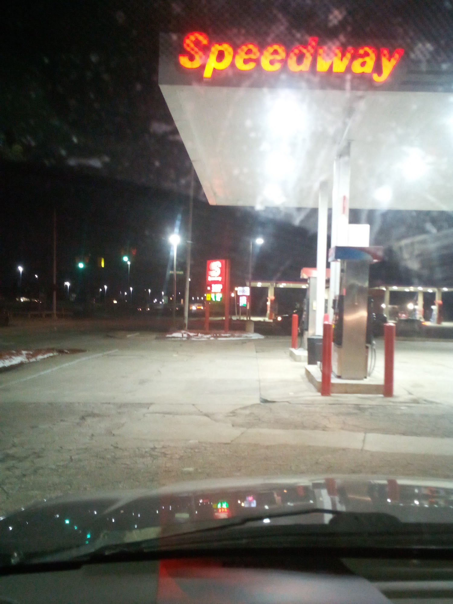 Speedway is a well-lit gas station with a small but good amount of snacks, including hot chicken wings, mini taquitos, sandwiches, and a whole lotta jerky. It offers Big Gulps and Slurpees, along with beverages, snacks, and frozen foods like ice cream and F'Real milkshakes. The parking lot has good lighting and the staff is super lovely, friendly, and sympathetic. The place is kept clean, with attendants cleaning windows and emptying garbage. However, it is small compared to other Speedways, feeling more like a gas station than a market, and has a limited selection of beverages. Some items, like breakfast sandwiches, are not always ready. While the air pump is free, it may not work. The location can get very busy. It is a convenient stop for gas, cigarettes, snacks, and drinks, especially for those using Speedway points.
