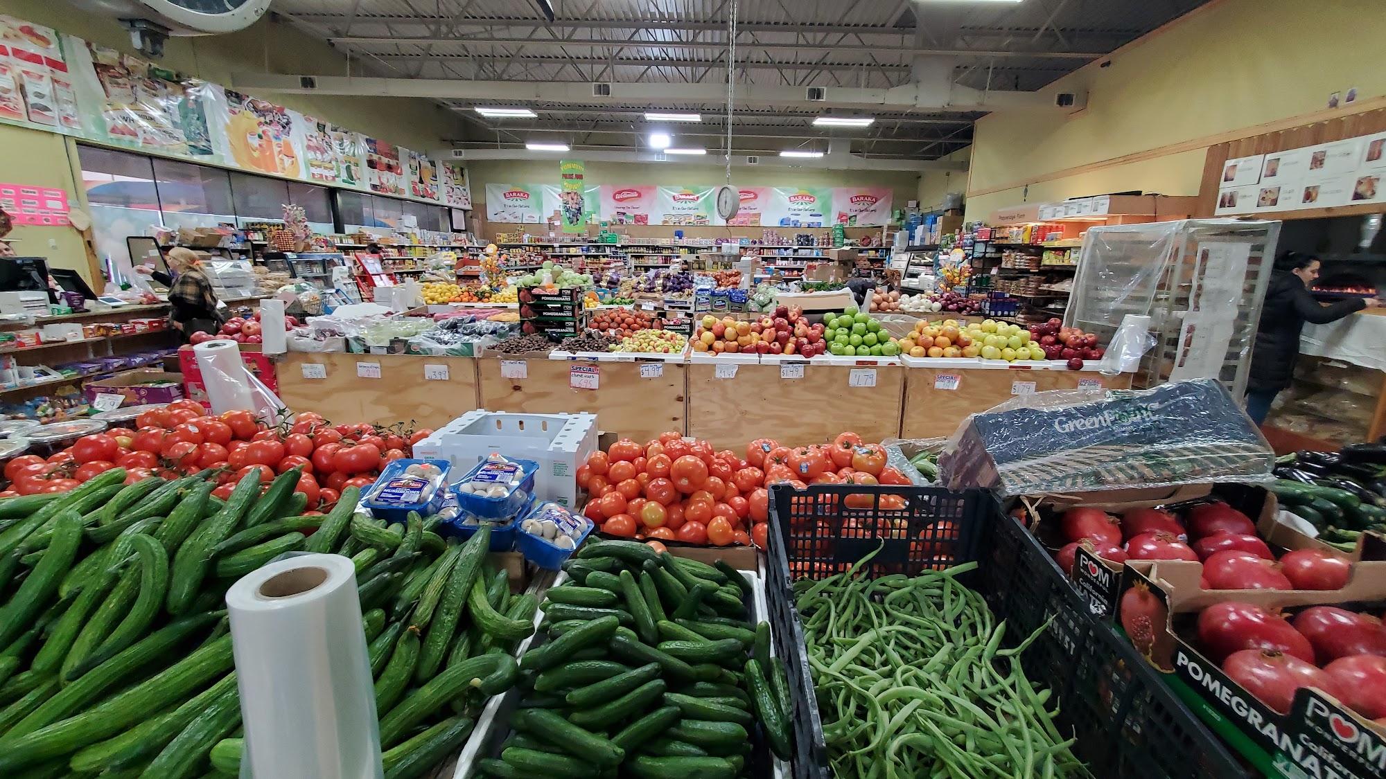 Great place to pick up fruits and veggies and other Mediterranean and mideast food items. Their hummus and bread is wonderful.Prices are very fair and as to the friendliness of the workers, I can't really say, as my wife is the one who usually stops in.