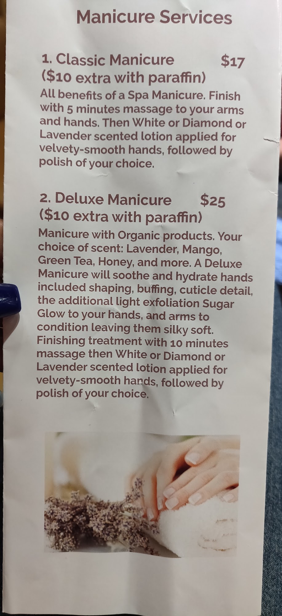 I took my sister to get a pedicure. She has dementia. They were very kind and did a great job. Very happy will return.
