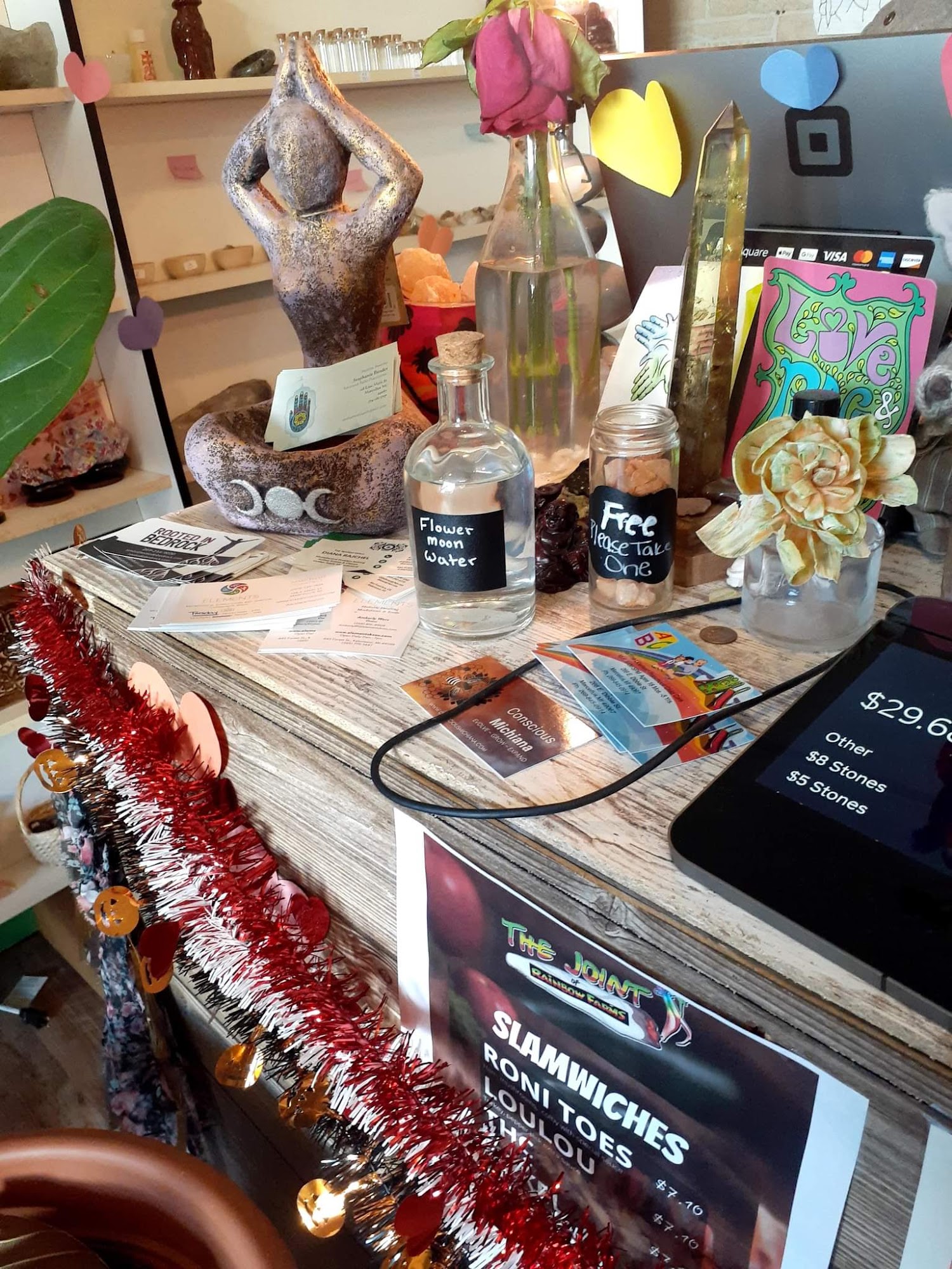 My wife went in to this little hidden treasure and fell IN LOVE. It has a great variety of crystals and other spiritual things. This store is beautiful inside and out. The staff was so kind and helpful. The puppies were such an added touch of happiness too.