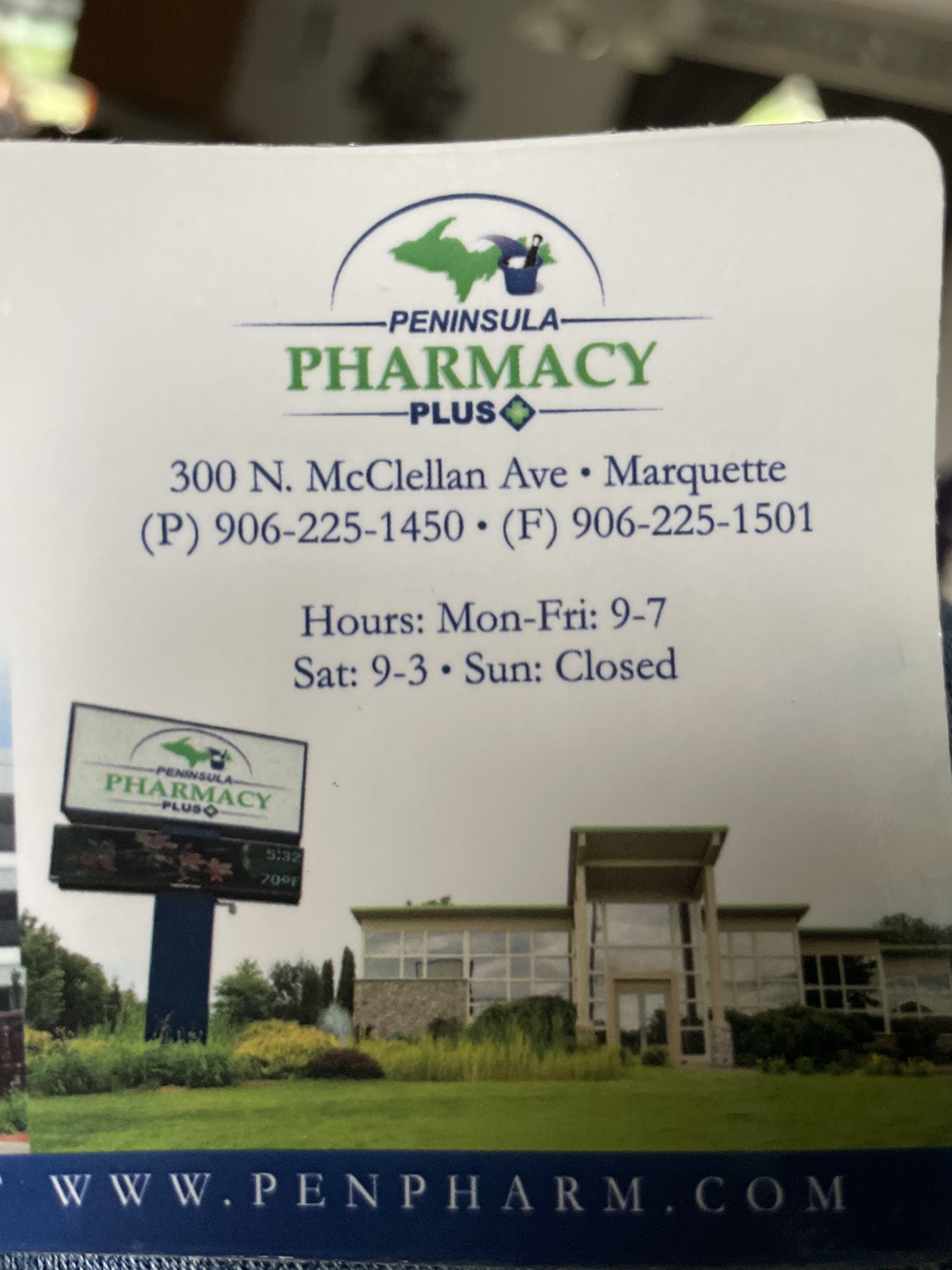 Peninsula Pharmacy PLUS offers convenient hours, drive-thru pickup, free delivery, gift shop and more. Transferring your prescriptions is easy. Just give us a call and we'll do the rest. NOW OFFERING COVID-19 TESTING! Call (906) 225-1450 to schedule an appointment.