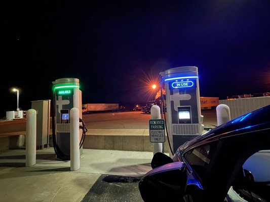 somewhat irregular charging speed, but 175 miles for $20 consistently in ~55 min. The combination subway gas station in the parking lot was also nice and the bathrooms were very clean.
