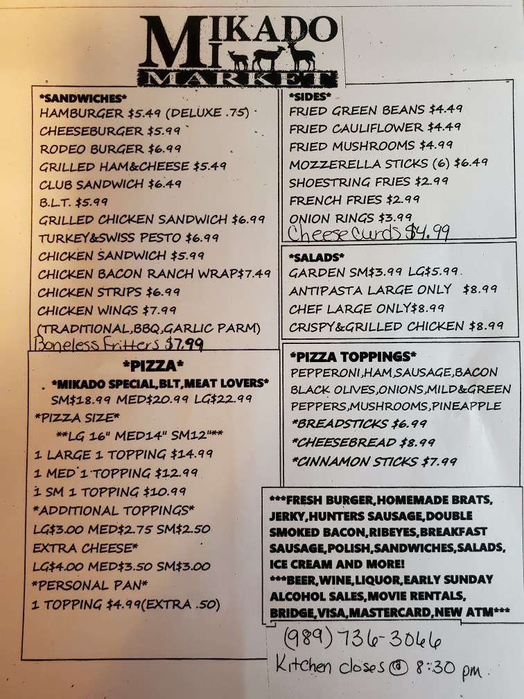 Mikado Market is a convenience store and deli known for its quality meat counter and smoked items, especially its killer double smoked bacon. It offers a great selection of foods including fresh hot pizza cooked to order, delicious sandwiches, and homemade brats. The store provides general needs, cold drinks, beer, wine, and liquor, along with Lotto and an ATM. There is also a small souvenir area with sweatshirts and hoodies. The staff is consistently described as very friendly, and the owner runs a wonderful business that has satisfied customers for over 20 years. It is considered a great place for all your needs in a nice town.