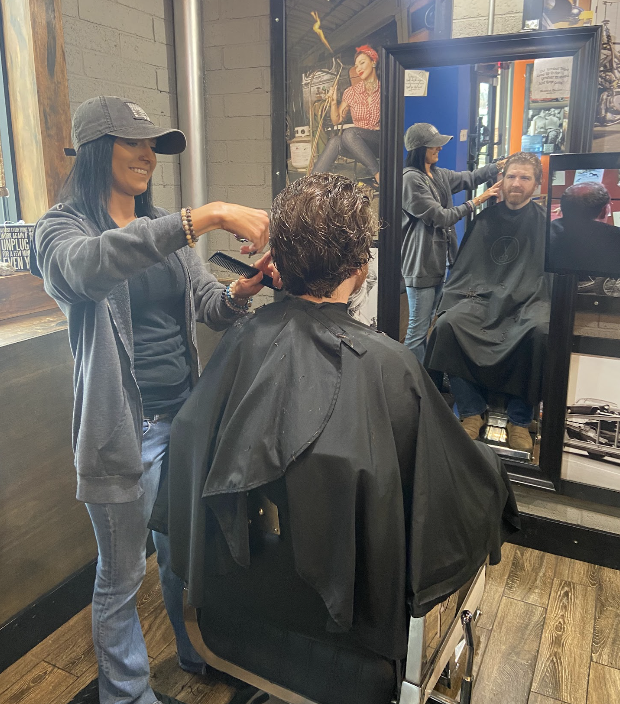 Hair Mechanix in Monroe is a barber shop where men get cutting edge of “Man Maintenance” by attentive and talented staff! Haircuts for men, beard and mustache trims and straight razor shaves are some of the barber services you can get. This is not your grandfather's barber shop. Extremely cool pictures adorn the walls, watch TV, relax and even have a beverage. Get a shampoo, hot towel and neck shave with your cut too. Treat yourself! Hair Mechanix is built by guys for guys, and is powered by better girls!