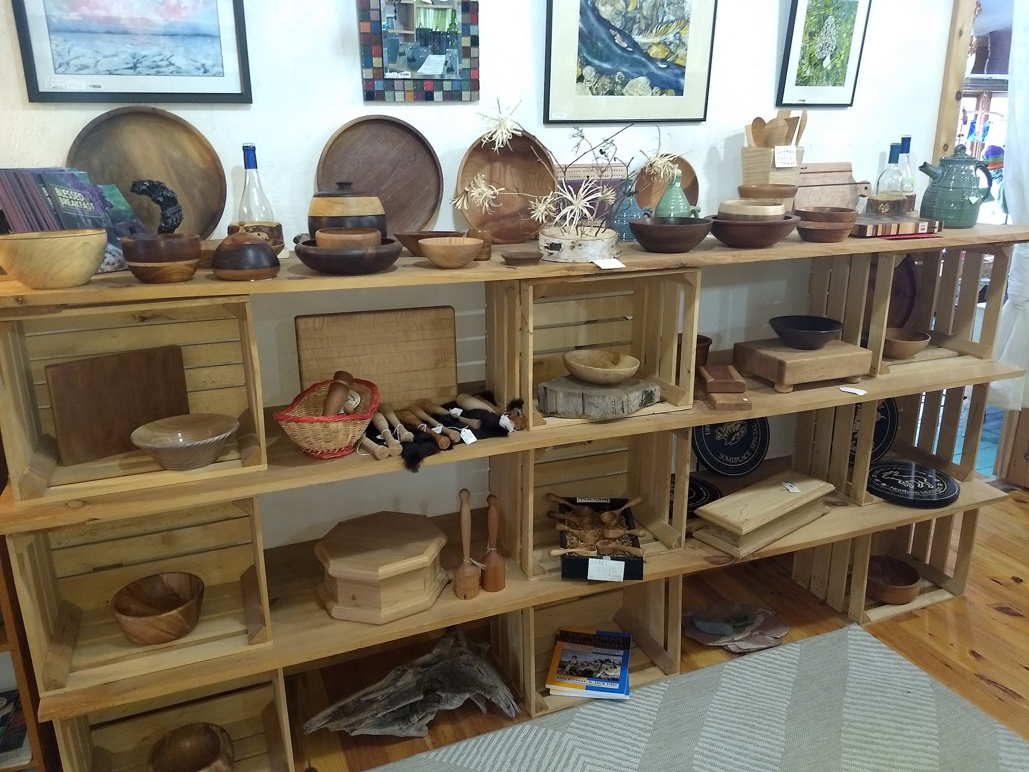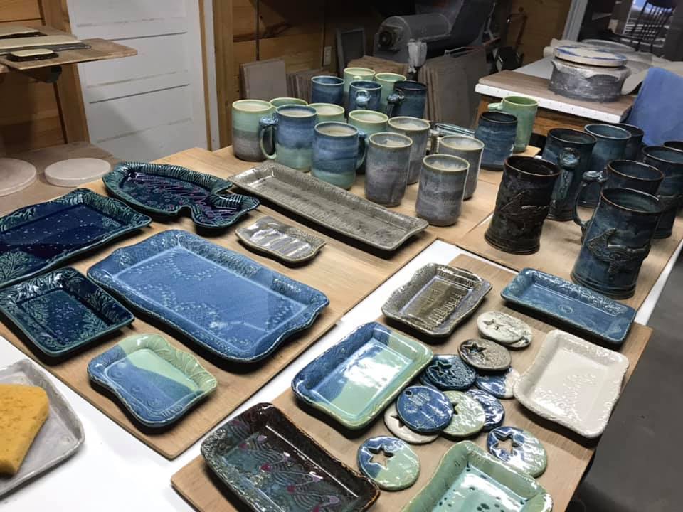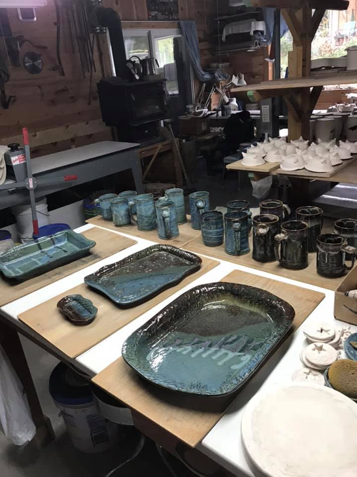 Our new, smaller gallery at our home studio has all of our unique pottery pieces, as well as many of the artists from our former downtown gallery. Come see us for unique and practical pieces from local artists, including pottery, wooden ware, jewelry, fiber arts, and paintings.