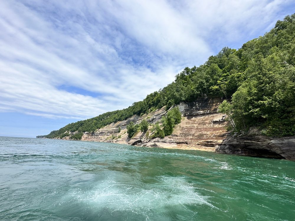 See Pictured Rocks up close! Our 1 1/2 hour tour explores 25 miles of Pictured Rocks Cliffs, waterfalls, bald eagles and two lighthouses around Grand Island. Along the way we’ll narrate and get up close views of the area's tallest Pictured Rocks Cliffs.