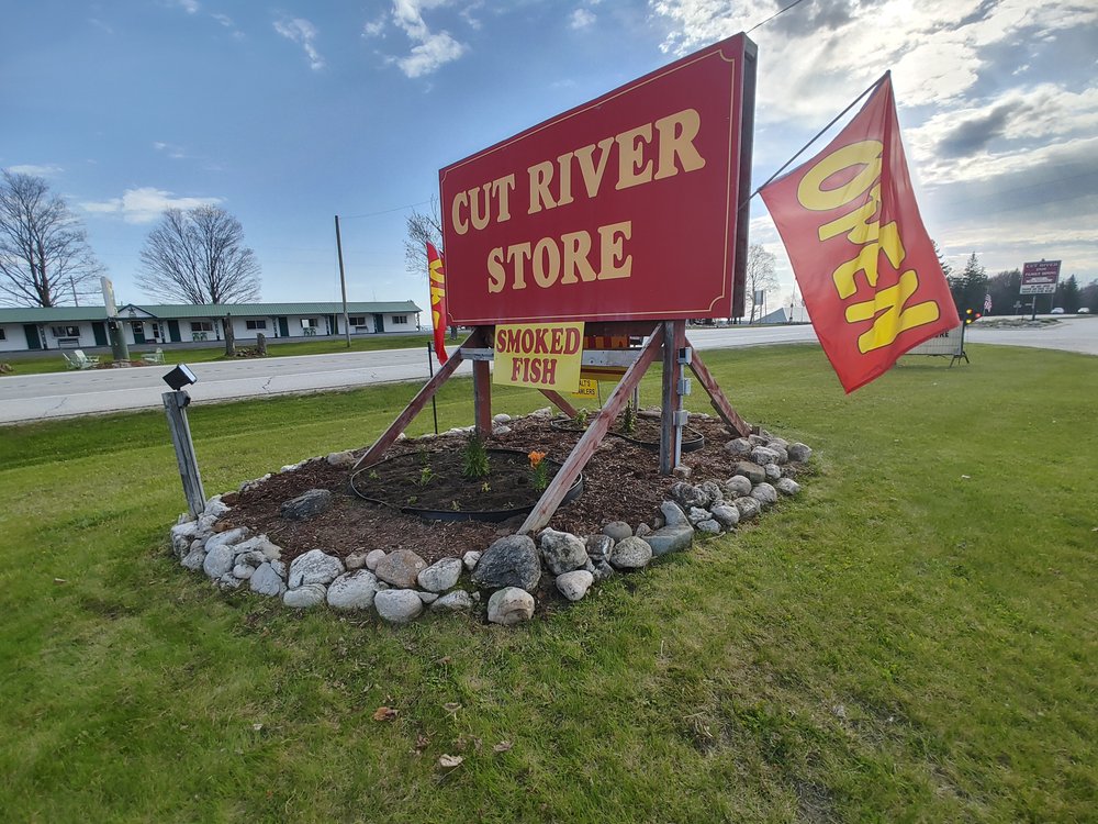 Evans Cut River Store, Cabins and Campgrounds is a cute little store and deli that is not a tourist trap. It is very clean and has all one can need, from elaborate top shelf liquors to souvenirs, books, candy, and shirts. The store has an amazing selection of delicious smoked fish, including salmon, whitefish, and trout, which many call the best smoked fish ever. They also offer good quality snacks and items like pecans. The staff is always warm, welcoming, friendly, and patient, willing to help and explain everything. The clean bathrooms are also noted. It is a highly recommended stop for anyone passing through.