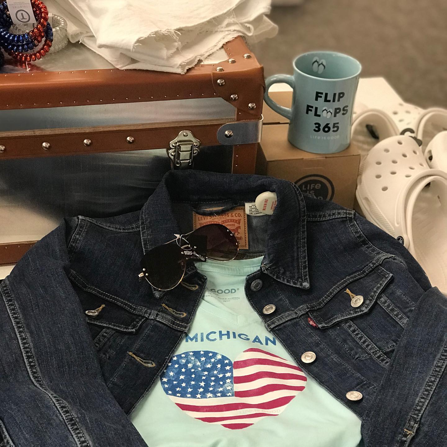 Upscale clothing shop for ladies. Blouses, tops, skits a, slacks and sweaters. Jewelry. Socks. Hats too. Support small business in your community. Parking on the street.