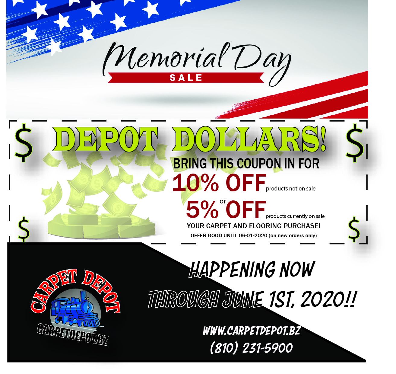 First time using Carpet Depot and we are very satisfied. The price for carpet was reasonable, installation was prompt and professional. We will be using them again going forward.