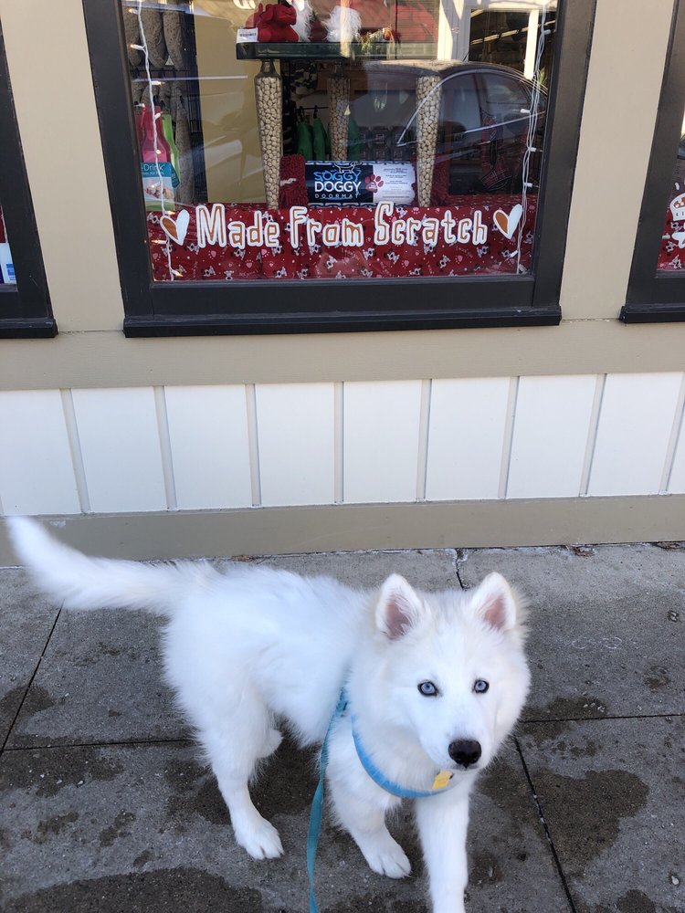 Three Dog Bakery is an absolutely adorable hidden gem tucked away in downtown Plymouth. The moment you walk in, you are greeted by an amazing smell from the many treats, which look so good you might want to try them yourself. Everything is made with so much love and care, featuring adorable and creative treats, custom birthday cakes, and personalized items. The store is also packed with a variety of toys, pre-boxed treats, food, rawhides, accessories, and the most adorable clothes for dogs and cats. The staff is typically incredibly friendly, kind, welcoming, and inviting, offering phenomenal customer service. They are helpful with questions about ingredients, which is great for pets with allergies. The owner's passion for the business is clear and makes the experience special. A meaningful photo wall features customers' pets, including the community. Prices for the homemade treats and bakery products are very reasonable, super reasonable, and fairly typical for a specialty store. While most experiences are wonderful, service can sometimes differ depending on who is working, occasionally making customers feel unwelcome or like they are a bother. Despite this, it is a perfect place to spoil your pet for a birthday or just because. Many customers recommend stopping by this convenient location and plan to definitely be back, making it a rare find that puts so much heart into what they do.