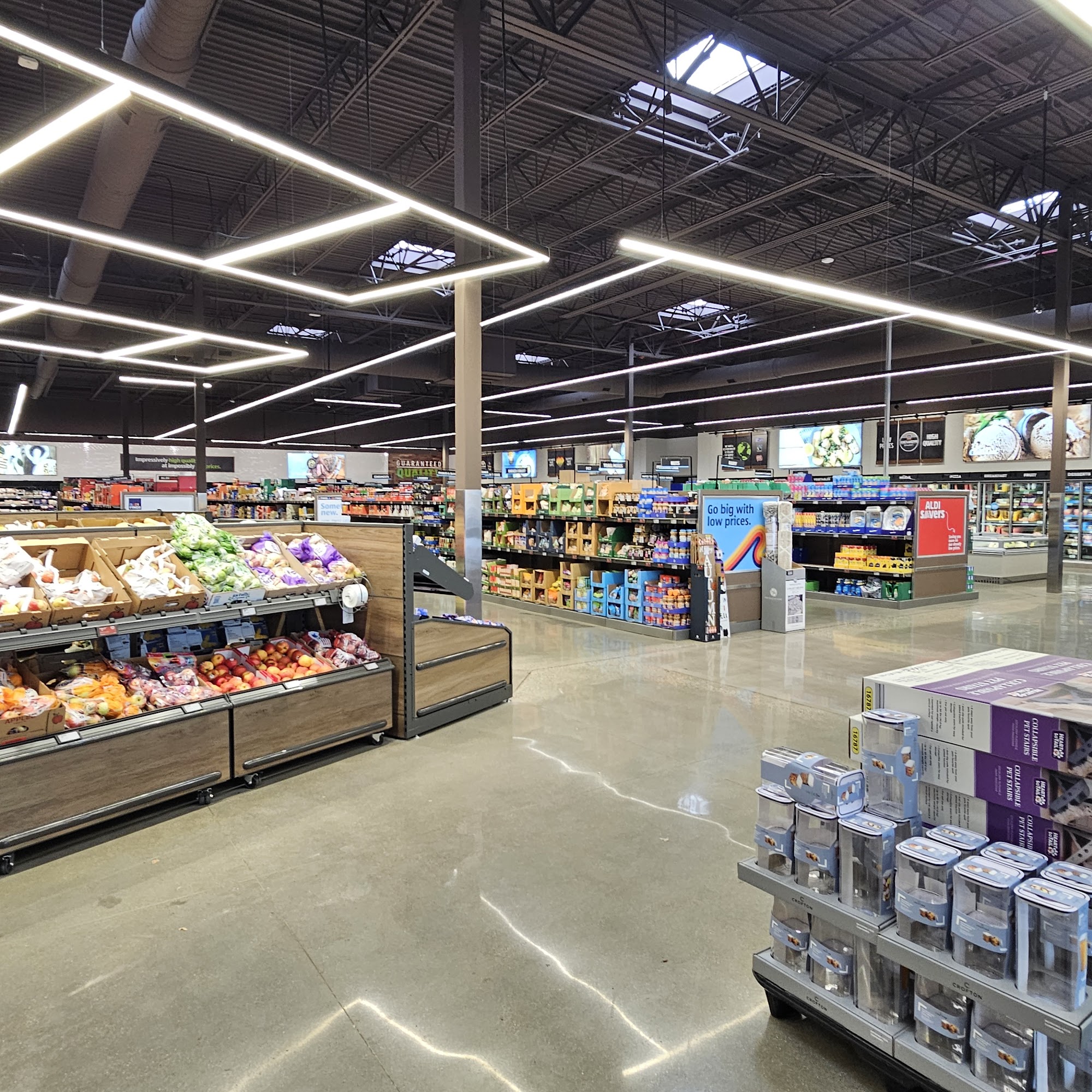ALDI in Portage is a clean store with wide aisles and friendly workers. It offers everyday low prices and great price savings on quality groceries, including excellent produce, fresh meat and seafood, baked goods, and lots of organic offerings. The store has very unique and flavorful product offerings that change month to month, including seasonal items and limited-time finds. Shoppers can also find home goods, pre-made deli items, and affordable house wine. While generally well-stocked, occasional issues with items like moldy fruit are noted. The location provides online ordering for curbside pickup or delivery.