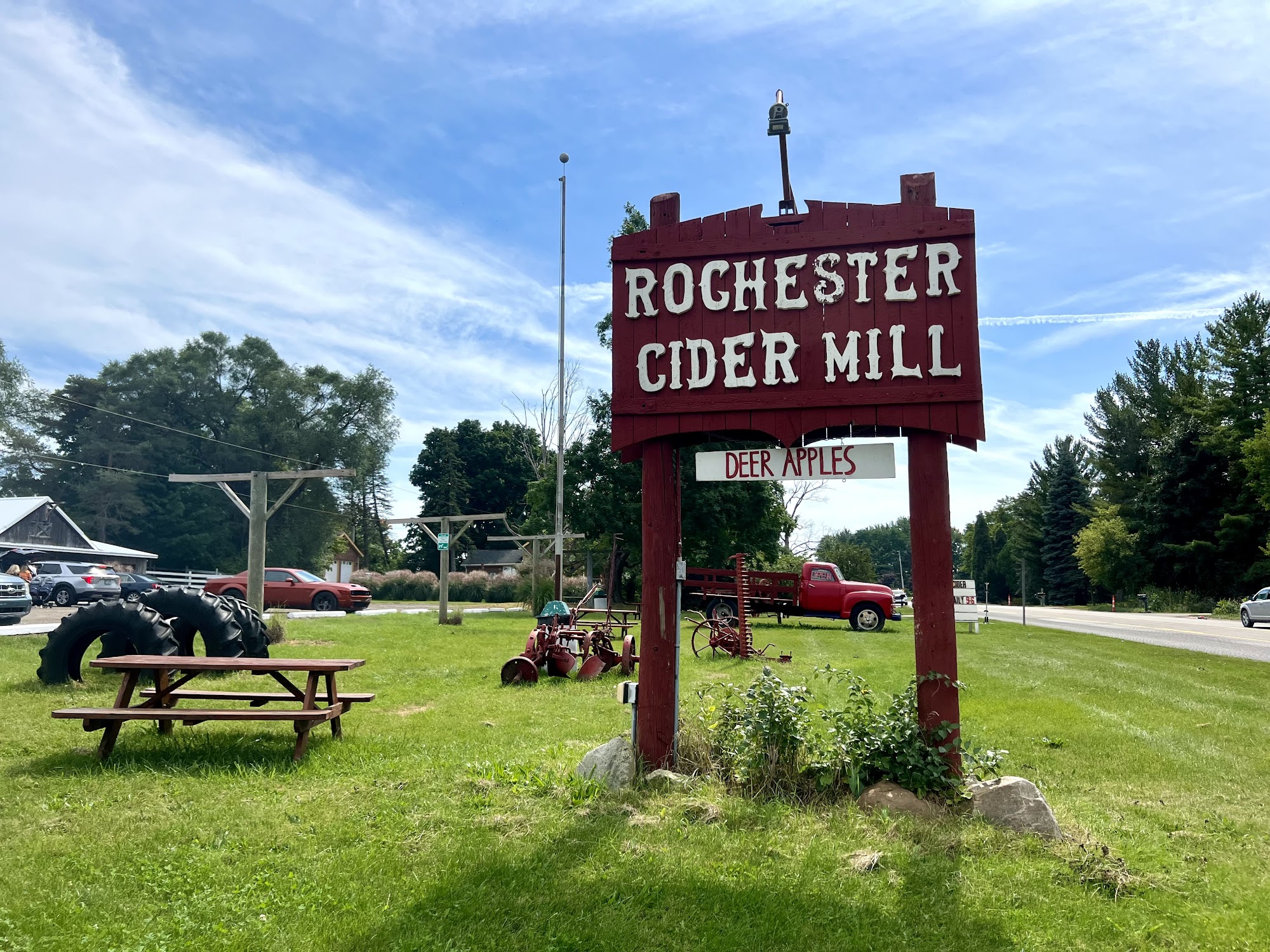 The Barkham family established Rochester Cider mill in 1981. The Barkham family has been producing cider in the Rochester area for several generations. Cousins, Aunts, Uncles, and core family pitched in to make the best cider and donuts in the region. Using local Michigan apples fresh from the orchard and selecting the best aromatic varieties (sequentially ripening) they blend a crafted cider that is as rich as their roots. The cider is never the same from week to week, except for its excellent flavor and taste. There are no preservatives and it’s not pasteurized. Aside from the amazing cider, the mill offers donuts, pies, apples, squash, honey, maple syrup, mums, pumpkins and more. Visit our petting farm or climb the giant straw pyramid.