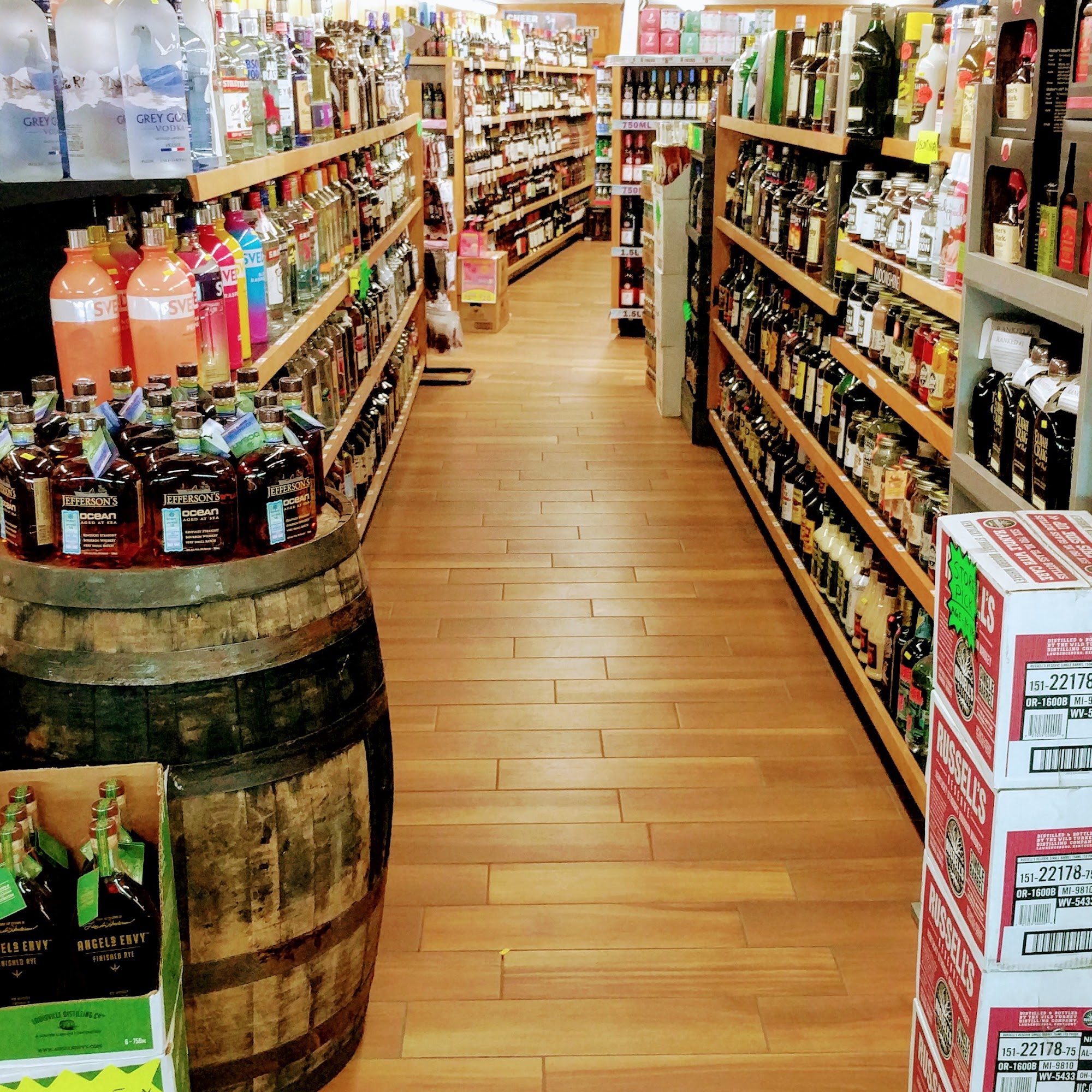 Easy to find. Right of the 131 between Rockford, Cedar Springs and Greenville. Pretty solid bourbon/scotch/whiskey selection. Decent beer selection. Decent prices.
