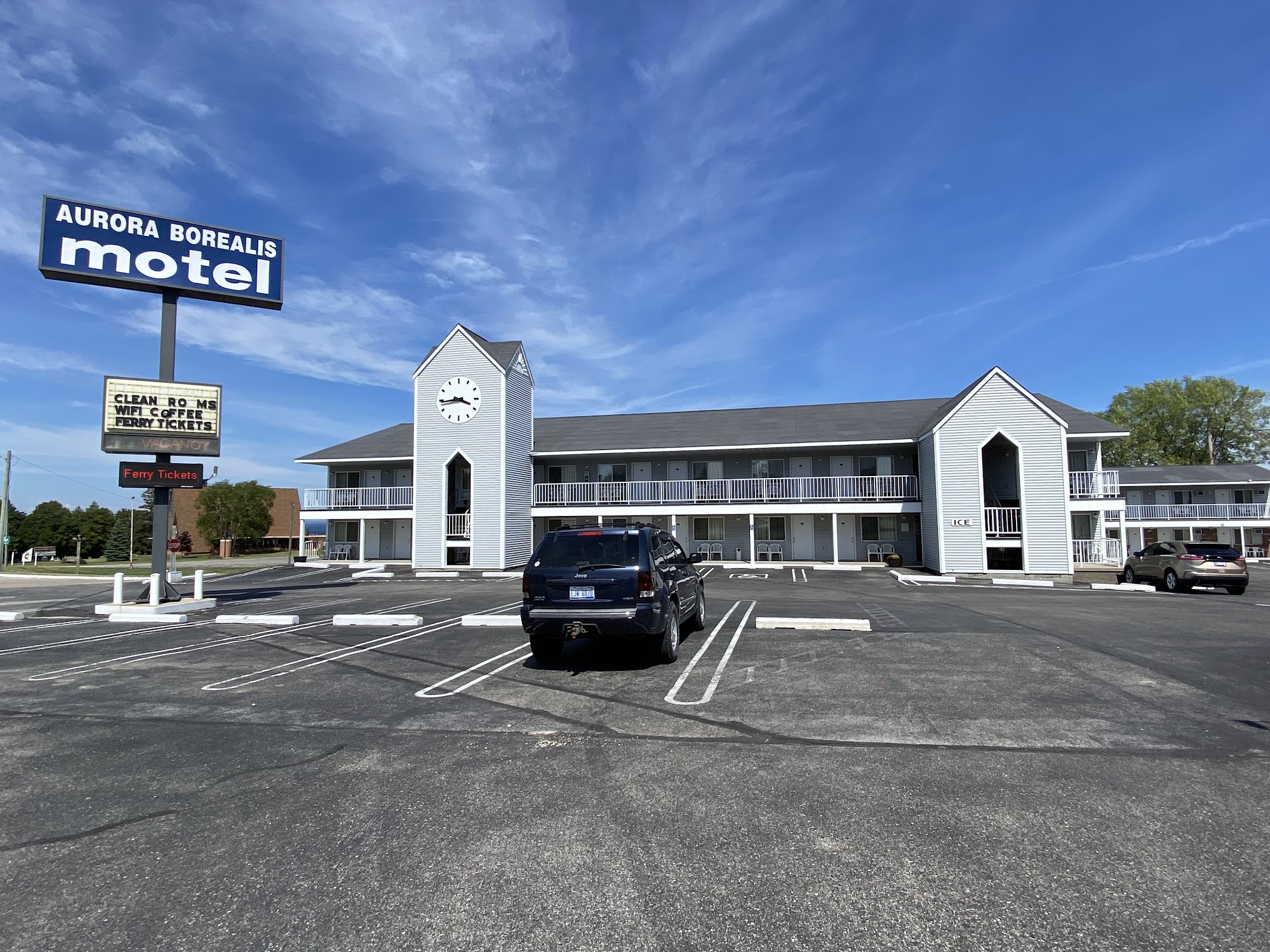 The Aurora Borealis Motel is a very nice, clean motel with great rooms. It offers a great overall experience and is a great value. The location is fantastic, with easy access to the highway and an easy walk to the downtown area and the big bridge. It is a good location for visiting Mackinac Island. The rooms are tidy, clean, and well-appointed, though some note the carpets could be cleaner and beds can be a little hard. The staff is alright. The fabulous Wild Blueberry restaurant is right next door. Many guests state they would definitely stay here again.
