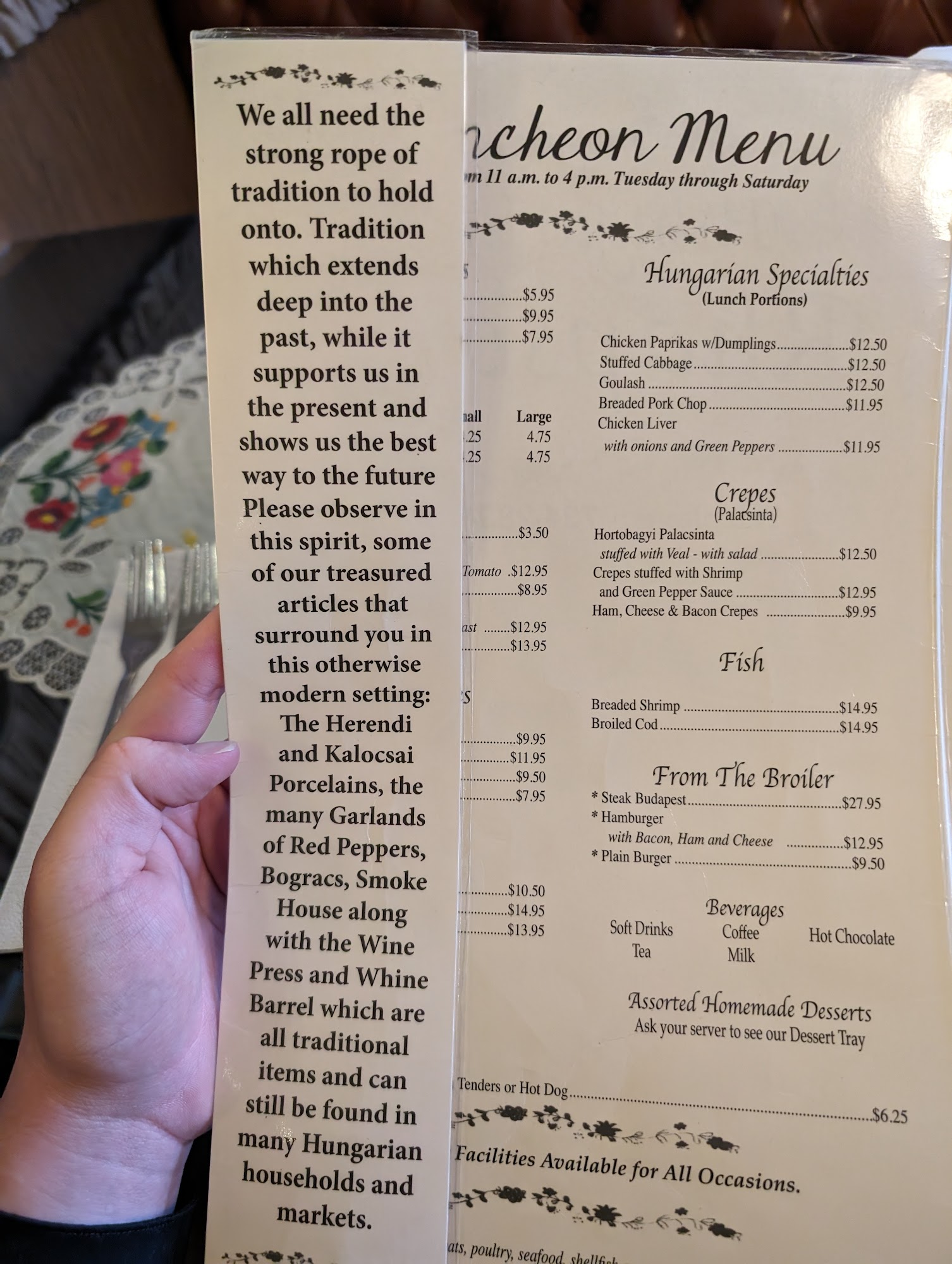 Incredible experience at Hungarian Rhapsody! The Hungarian platter was out of this world, flavorful, hearty, and perfectly cooked. Desserts were absolutely unbelievable (don’t skip them!). Service was warm, attentive, and top notch. Can’t wait to come back!