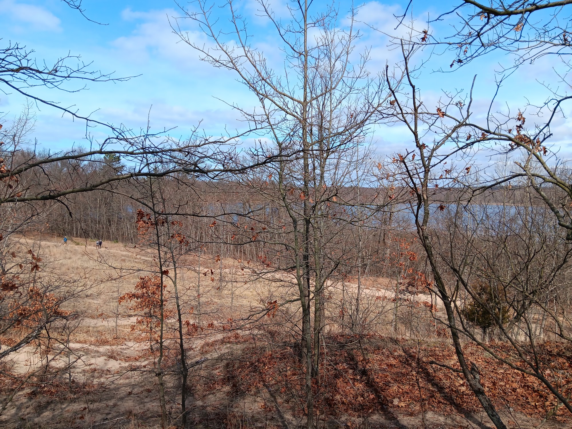 Grand Mere State Park is a quiet, secluded piece of Lake Michigan shoreline with few visitors. It features an excellent variety of hiking trails, from a giant sand dune to timber-covered ravines and ridges, along with small inland lakes and marshland. The walk to the clean, not heavily used beach is a good hike from the parking lot, about half to three-quarters of a mile, involving large sand dunes and hills. The path can be moderate, uphill on hot sand, and is not handicap accessible. It is perfect for solo trail blazers, hiking, and relaxing, but not the type for cooler parties or many chairs. Leashed dogs are allowed, but the hot sand requires protection for their paws. Visitors should note midsummer issues with flying insects like gnats and mosquitoes. A Michigan state park pass on the license plate provides free entry.