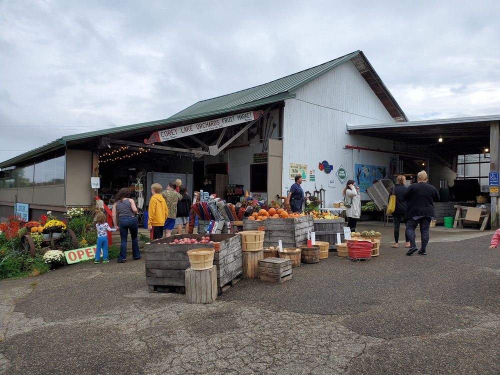 Hubbard's Corey Lake Orchards is a beloved destination known for its seasonal produce, fresh fruits, and delightful baked goods. Many visitors have fond memories of apple picking and enjoying the variety of offerings at the farm. The farm features a market with local artisans, highlighting the incredible selection of foods, including apples, potatoes, and especially the renowned donuts. The friendly and helpful staff enhance the welcoming atmosphere, making it a favorite spot for families. Guests have praised the delicious cider slushies and the quality of the baked goods, although some have noted that certain activities, like U-pick apple picking and donuts, are only available on weekends. This has led to some confusion, so it is recommended that the farm improve communication about availability on their website. Despite this, visitors have left with beautiful produce and expressed high satisfaction with their experiences. Overall, Hubbard's Corey Lake Orchards is a charming place for a fun family outing, especially in the fall when pumpkins and apples are in abundance.