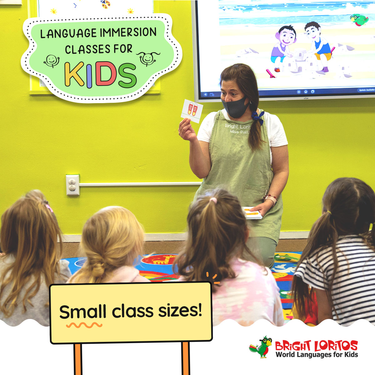 SPANISH IMMERSION PRESCHOOL, DAYCARE & WEEKLY CLASSES Bright Loritos provides language immersion instruction for children ages 1-12. We offer language weekly classes, pre-schools, and summer camps in Spanish, French, Mandarin and Arabic. We currently have three convenient locations in the cities of Troy, Novi and Rochester. We promote world language acquisition through immersion, comprehensible input-based learning, communication and play. The method is backed by a dedicated team of language experts, who further an empowering environment for students to become lifelong language learners.