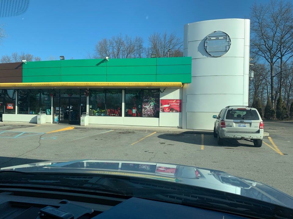 Pretty convenient location, plenty of snacks and even a Tim Hortons drive thru.