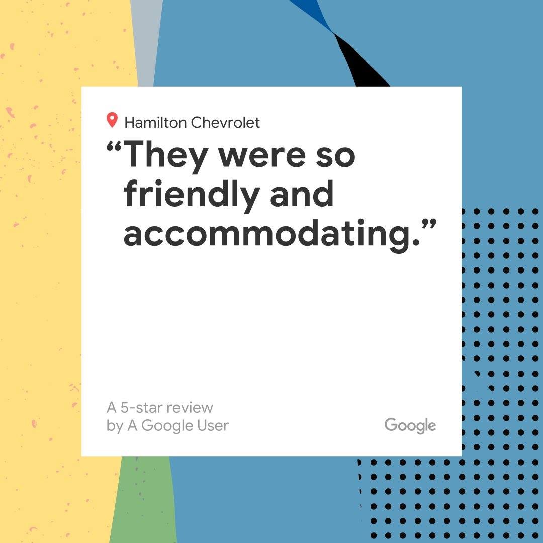 I have been dealing with Hamilton chevrolet since 2006 and i can say they are the best when it comes to servicing my vehicles . Thank you.