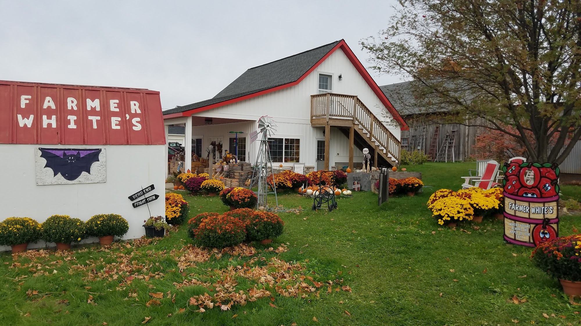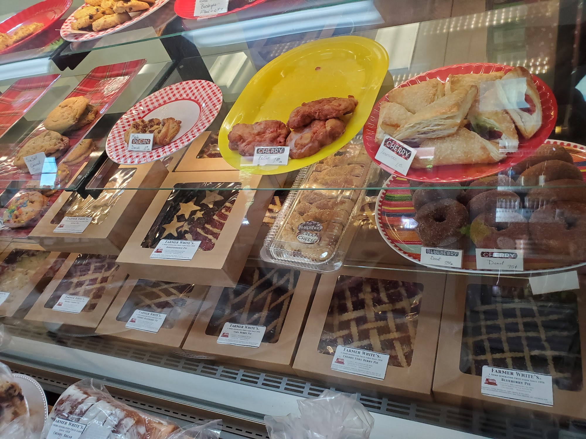 Farmer White’s is a cute little farm that has been in a family for generations. The place offers a great selection of pumpkins, gorgeous mums, and a variety of home made salsa and jams. Their baked goods include huge cookies, lemon blueberry cookies, thumb print cookies, incredible doughnuts, and the best pies and cherry pies. The apple cider is described as the best cider, very good price, unpasteurized, $9/gallon, with a perfect balance of sweetness and tartness. Customers say the owners are really sweet and will bend backwards for return customers. The store smells amazing, has more jelly, jam, and baked items than you can imagine, and ladies greet customers kindly. Customers run don’t walk to buy the incredible lemon blueberry cookies and cherry jam.