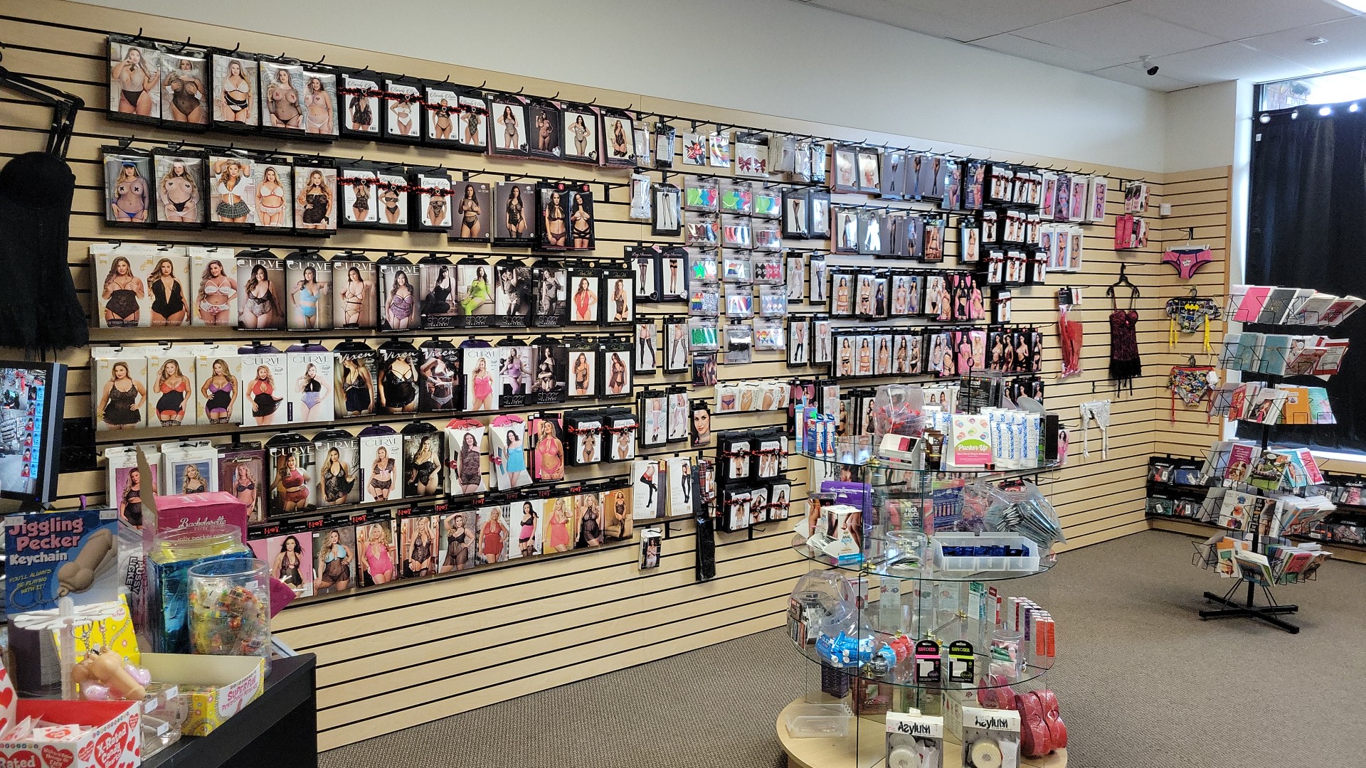 Insanely overpriced products, limited inventory and consistently understaffed because of poor management. You'll get better prices and more options at lovers lane.edit: Forgot to mention the insanely dirty carpet and musty smell. Would've given 0/5 stars for that alone.