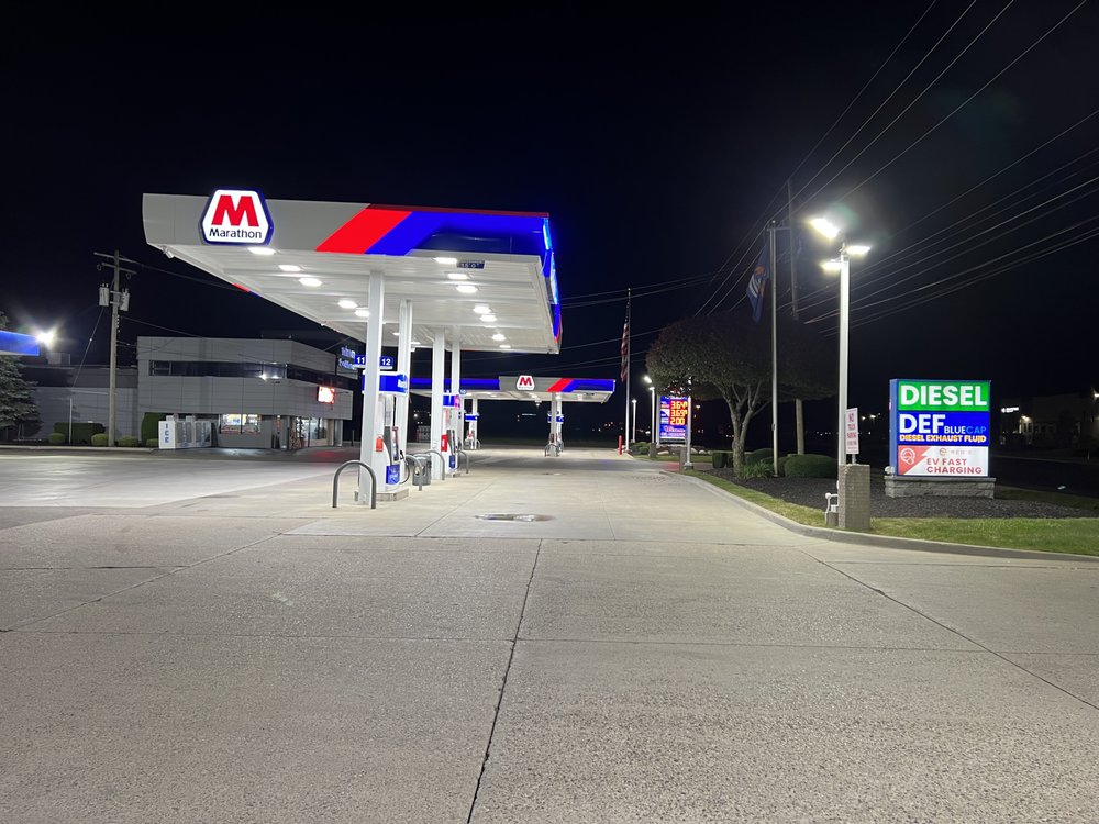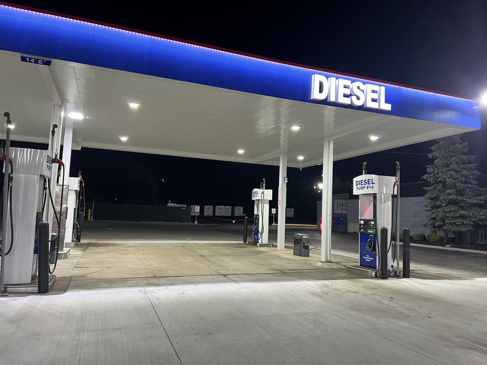 Wixom Fuel Stop is open 24/7 and is a nice, clean, and organized gas station. It has a good price on gas and diesel, along with an EV charging station. The store offers morning coffee, many snacks, and food. Services include free air for tires and oil changes. The staff is friendly and makes customers feel valued. The lot has great lighting, though no truck parking. The clean bathrooms are all-gender. Their rewards program saves five cents per gallon. It is a great place to stop and is highly recommended.