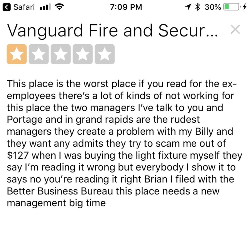 Vanguard Fire & Security Systems provides full-service fire, safety, and security installation and maintenance. Reviews highlight excellent, professional, and swift service from its technicians. Staff are described as helpful, informative, friendly, and well-mannered, with excellent customer service. Technicians promptly explain systems, answer questions, and efficiently handle tasks from fire extinguisher checks to updating security systems. The service is reliable, with technicians taking care of everything quickly and notifying clients of their findings. Customers report very smooth operations and express high satisfaction.