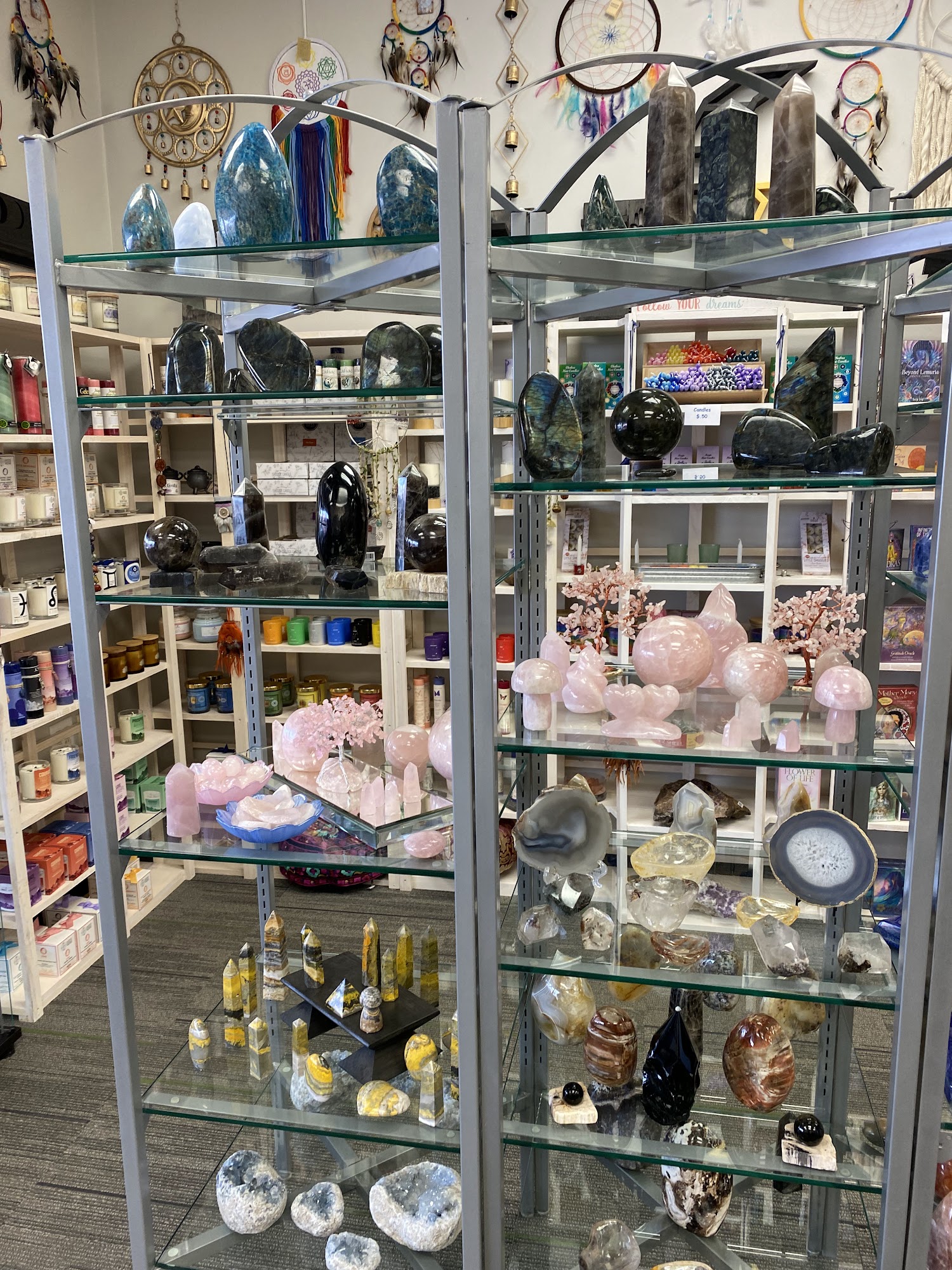 Decided to stop in here on a whim with my husband today. It's a cozy store. There's so much variety in terms of stones/crystals, size, shape, and style. I saw jewelry, tarot, incense, and figurines, among other items in the shop. I got a lovely polished oval piece of banded amethyst for $16. I'll certainly go back again!