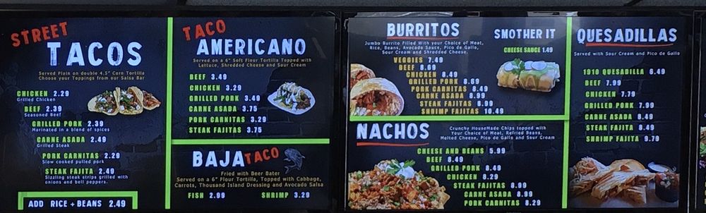 1910 Fresh Mexican Kitchen offers a fantastic dining experience for those seeking authentic and delicious Mexican cuisine. The restaurant is known for its top-notch tacos, including the popular barbacoa option, which customers have praised for its tender and juicy meat. The menu also features a variety of other tempting dishes, such as mini taco bowls, burritos, and nachos, all made with fresh and lean cuts of meat at reasonable prices. The restaurant boasts a chill and lively atmosphere, with good music playing in the background, making it an excellent choice for a fun and enjoyable dining experience. The staff are polite and take the time to explain the menu, ensuring that customers have a pleasant and informative dining experience. Customers have consistently praised the freshness and quality of the food, with many highlighting the flavorful salsa sauces and the spotless tables. The restaurant is a favorite among young people, and its quick service ensures that diners can enjoy their meals hot off the grill. Overall, 1910 Fresh Mexican Kitchen is highly recommended for anyone looking for tasty and authentic Mexican food in a welcoming and enjoyable setting.