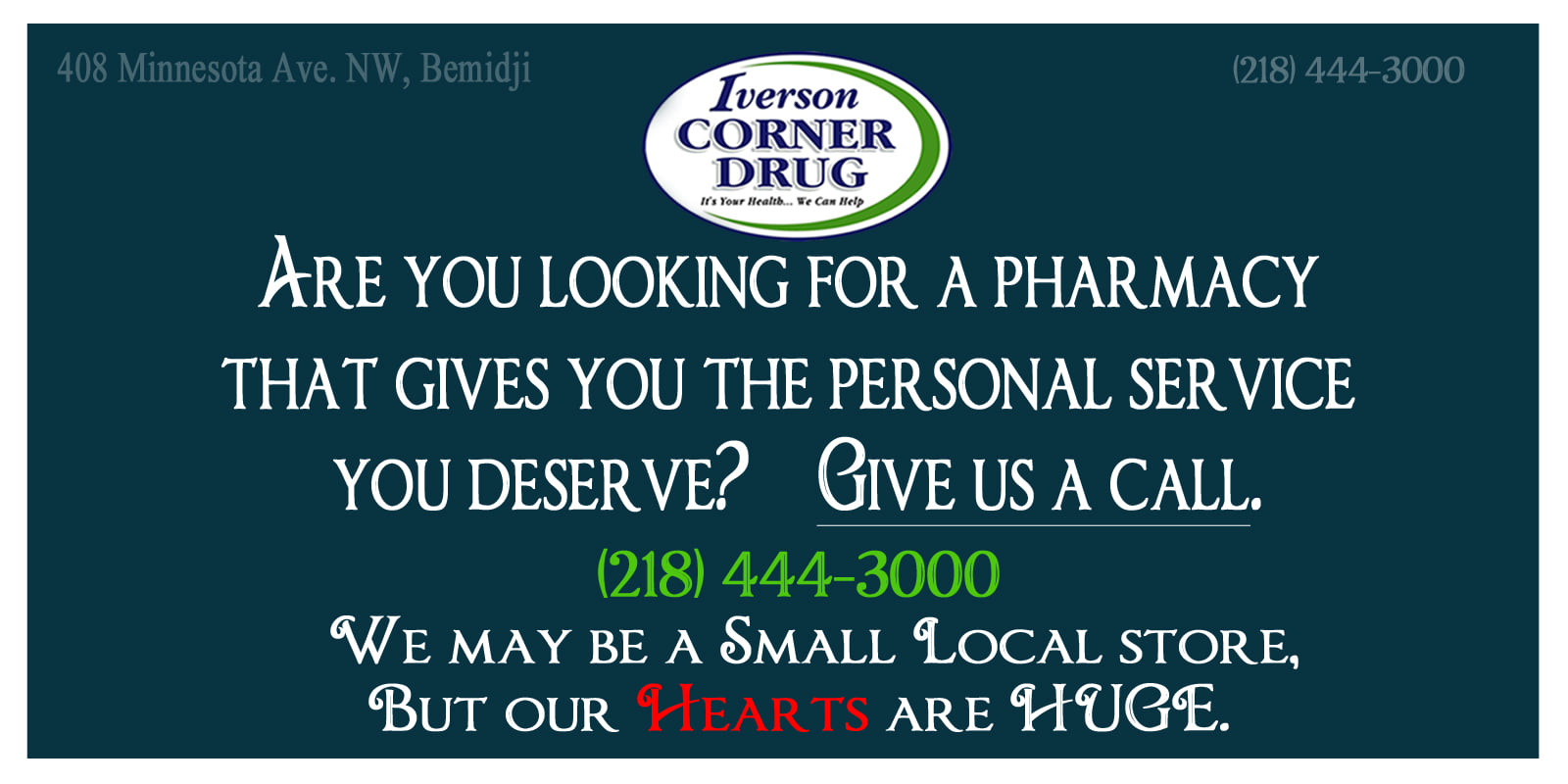 By far the best pharmacy in Bemidji. They will take the time to talk to you and help with prescriptions or question you may have.