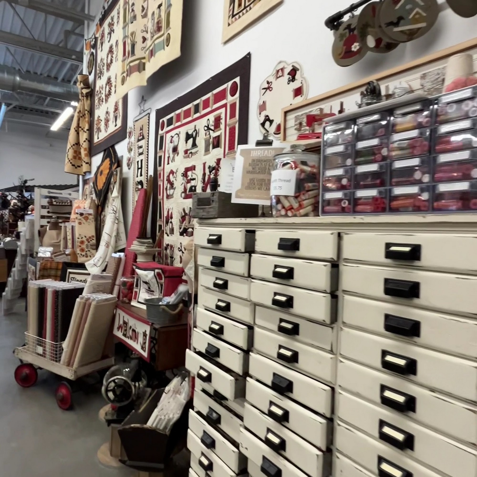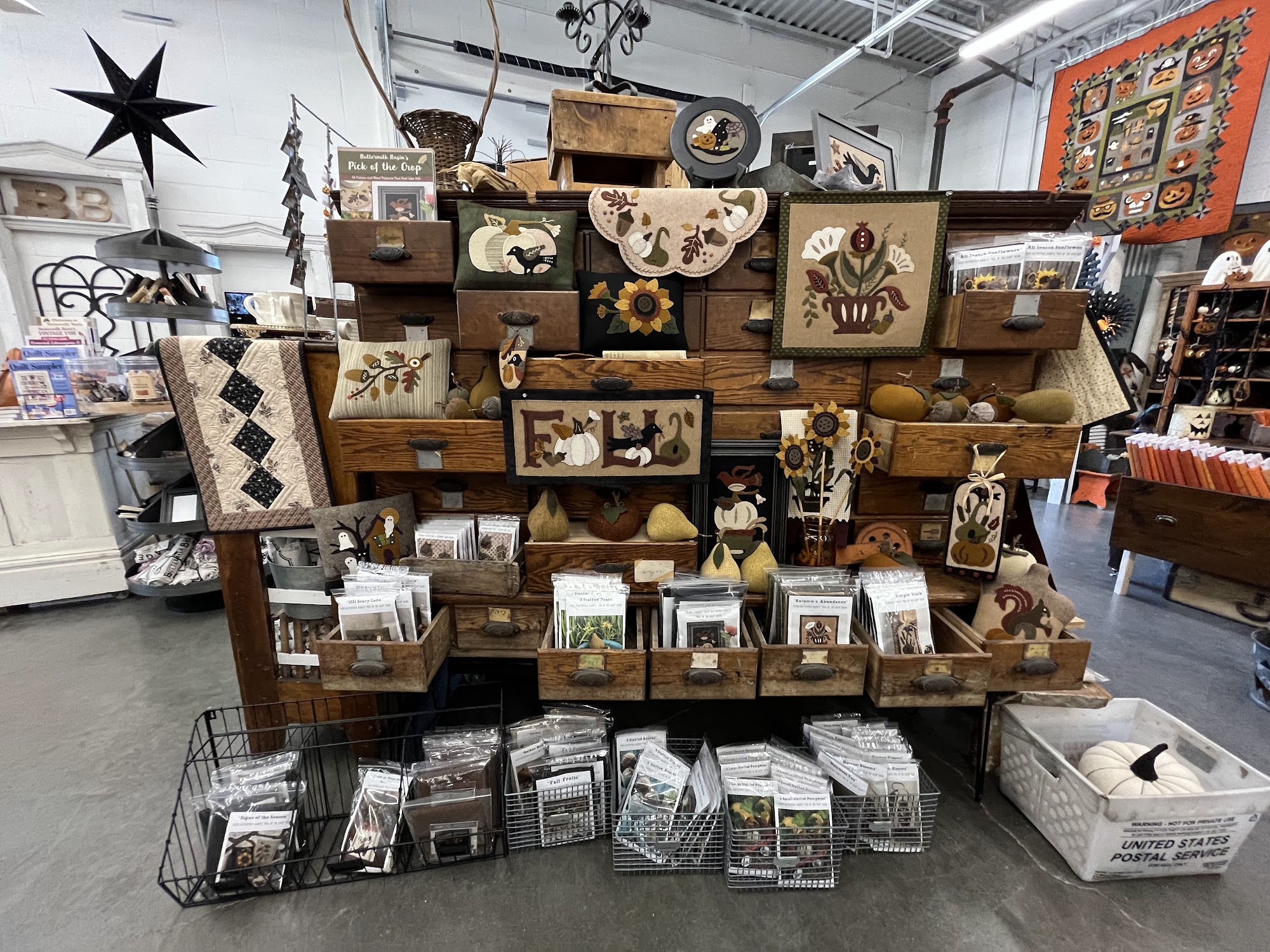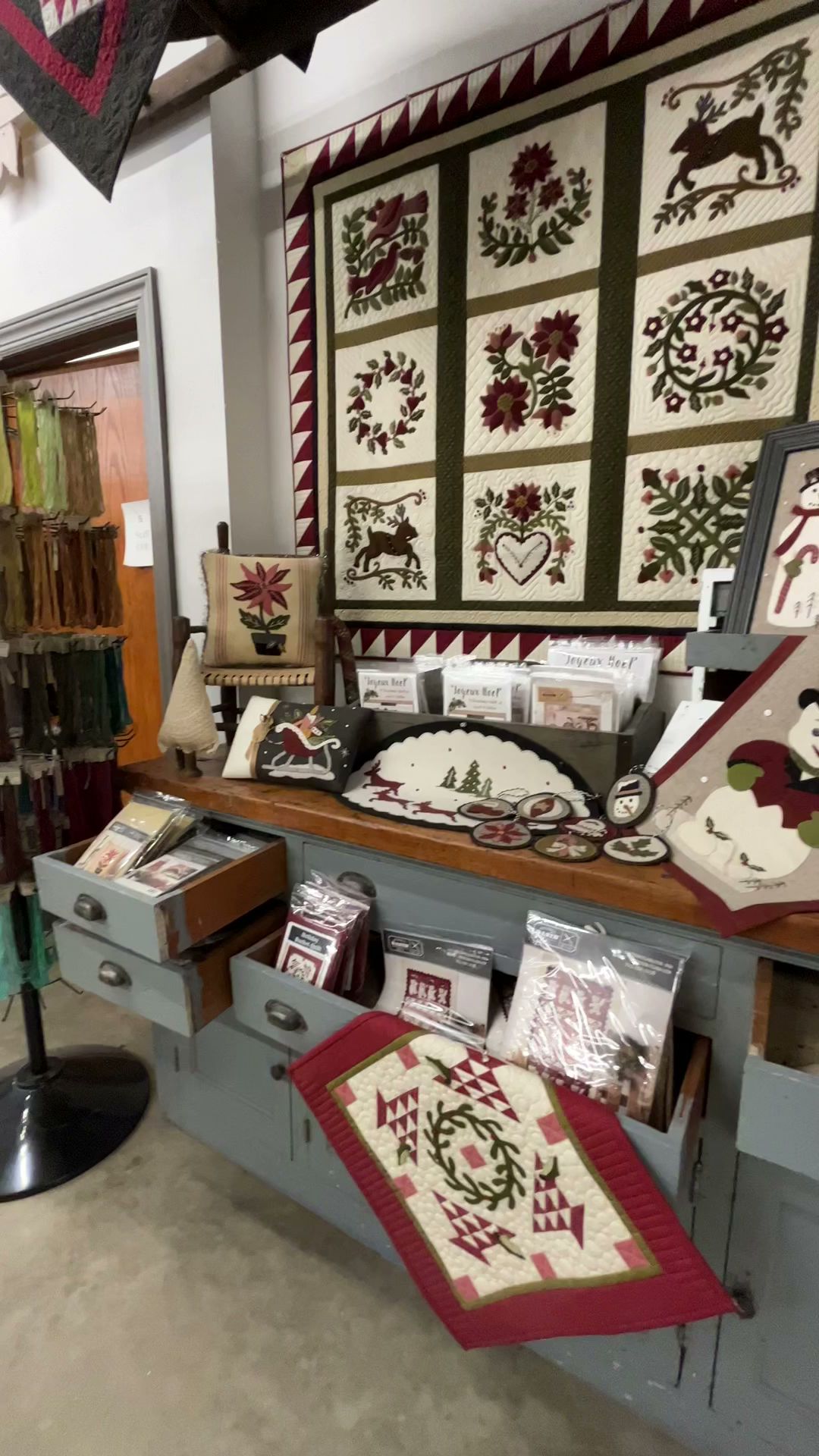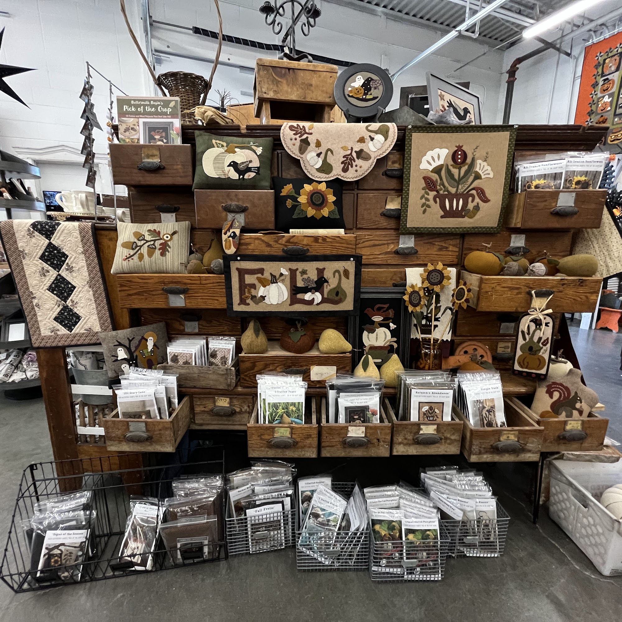 On our recent Shop Hop tour of stores, this was one of our favorites. Lots of wool fabrics and distinct kits. They had a great selection of fabrics, many completed projects to admire, and a great selection of treats for the Shop Hop.