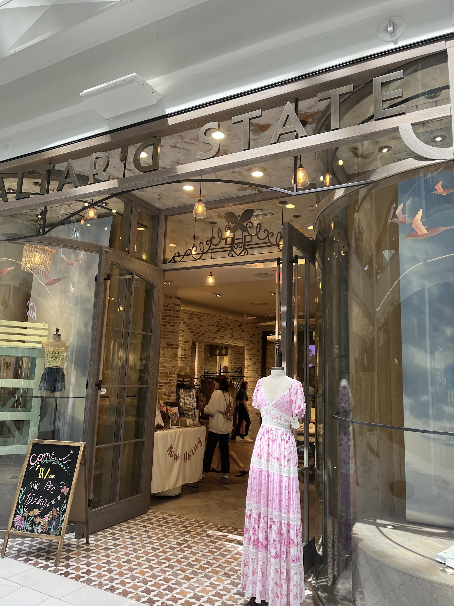 Altar'd State at Mall of America is a growing women's fashion brand known for its cute clothing and high-quality items. With a wide selection of stylish apparel and accessories, the store also offers charming home decor and gifts. Many customers appreciate the well-priced items, including great clearance deals. The store is consistently clean and well-kept, contributing to a pleasant shopping experience. The staff at Altar'd State are often described as welcoming, friendly, and attentive. They go above and beyond to assist customers, creating a supportive environment. Shoppers have shared positive experiences, especially when seeking special items like wedding dresses. The presence of thoughtful touches, such as offering Dum-Dums while waiting for fitting rooms and having a prayer request book, adds to the overall warm atmosphere. Overall, Altar'd State provides a unique shopping experience where customers feel comfortable and valued, making it a recommended destination for anyone looking for fashion and more.