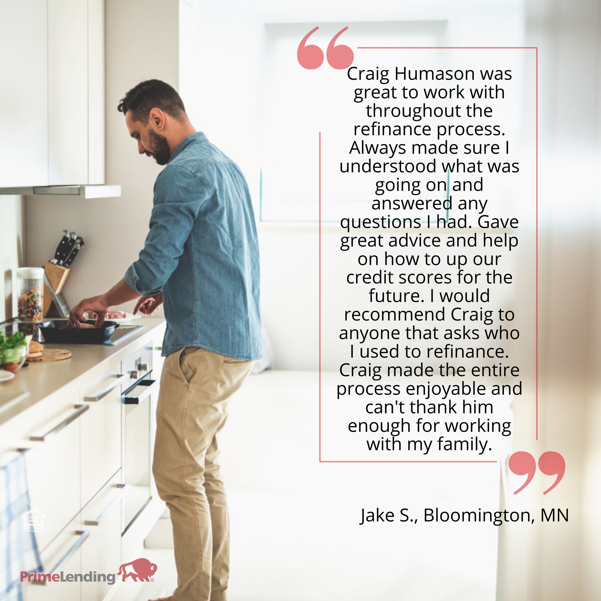 Craig has helped us multiple times with refinancing and buying properties. We continue to go back and refer others to him. He is patient, thorough, and explains things so well. I know he has our best interest in mind and feel well taken care of with him.