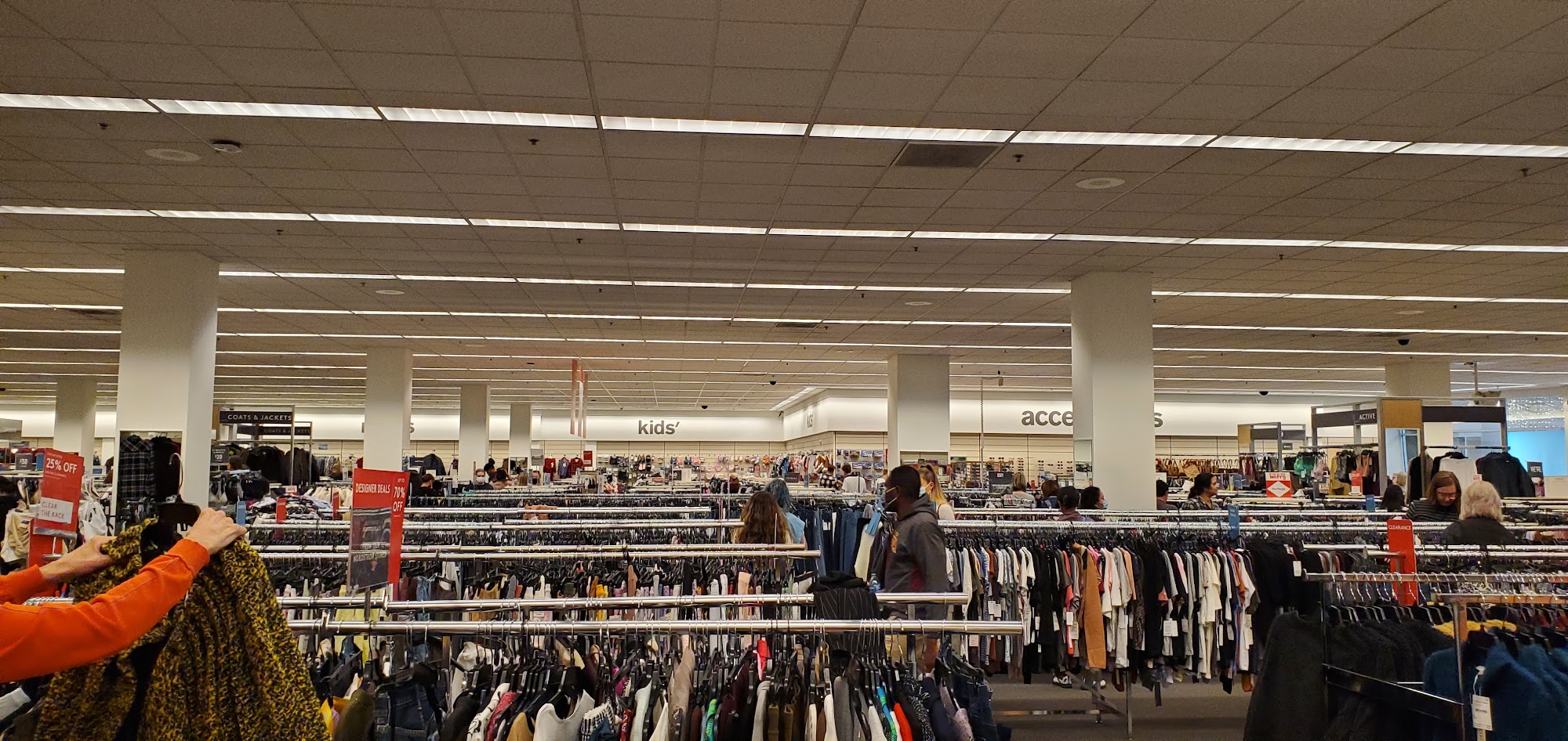 Nordstrom Rack is a popular discount store known for offering high-end brands at great value. The store is well-organized, making browsing smooth, and features a wide selection of shoes, handbags, and clothing. Many shoppers find treasures through patience and persistence, as stock can be unpredictable and sometimes well searched. The store maintains cleanliness, and fitting rooms are kept tidy. The checkout process is efficient, and staff members are friendly and knowledgeable, especially when assisting with payments. While the store offers many deals, some customers feel that prices can still be high, especially in the lingerie and women's sections, which may have limited options and are often marked up. The store is appreciated for its helpful staff, good selection, and constantly changing inventory, which makes shopping exciting. Lines at checkout are generally quick-moving, and the store is well maintained, though some suggest increasing the number of cashiers and more frequent organization. Overall, Nordstrom Rack is a favorite local spot for those seeking quality items at discount prices.