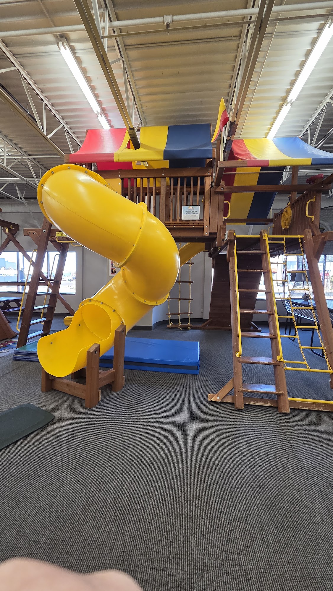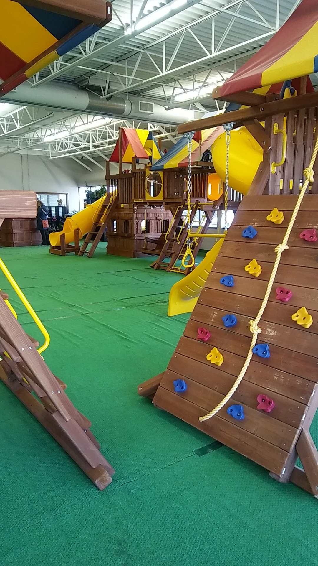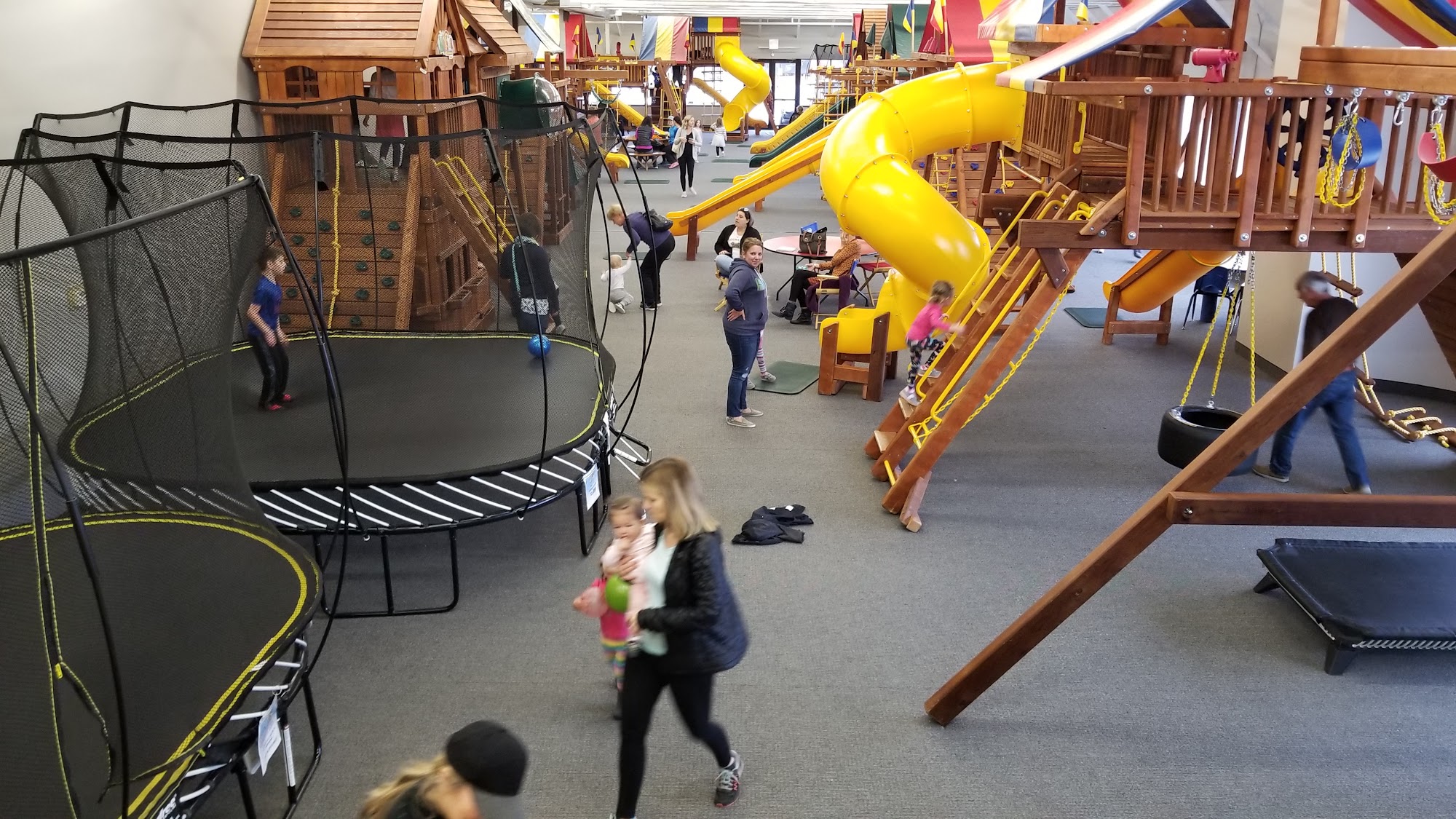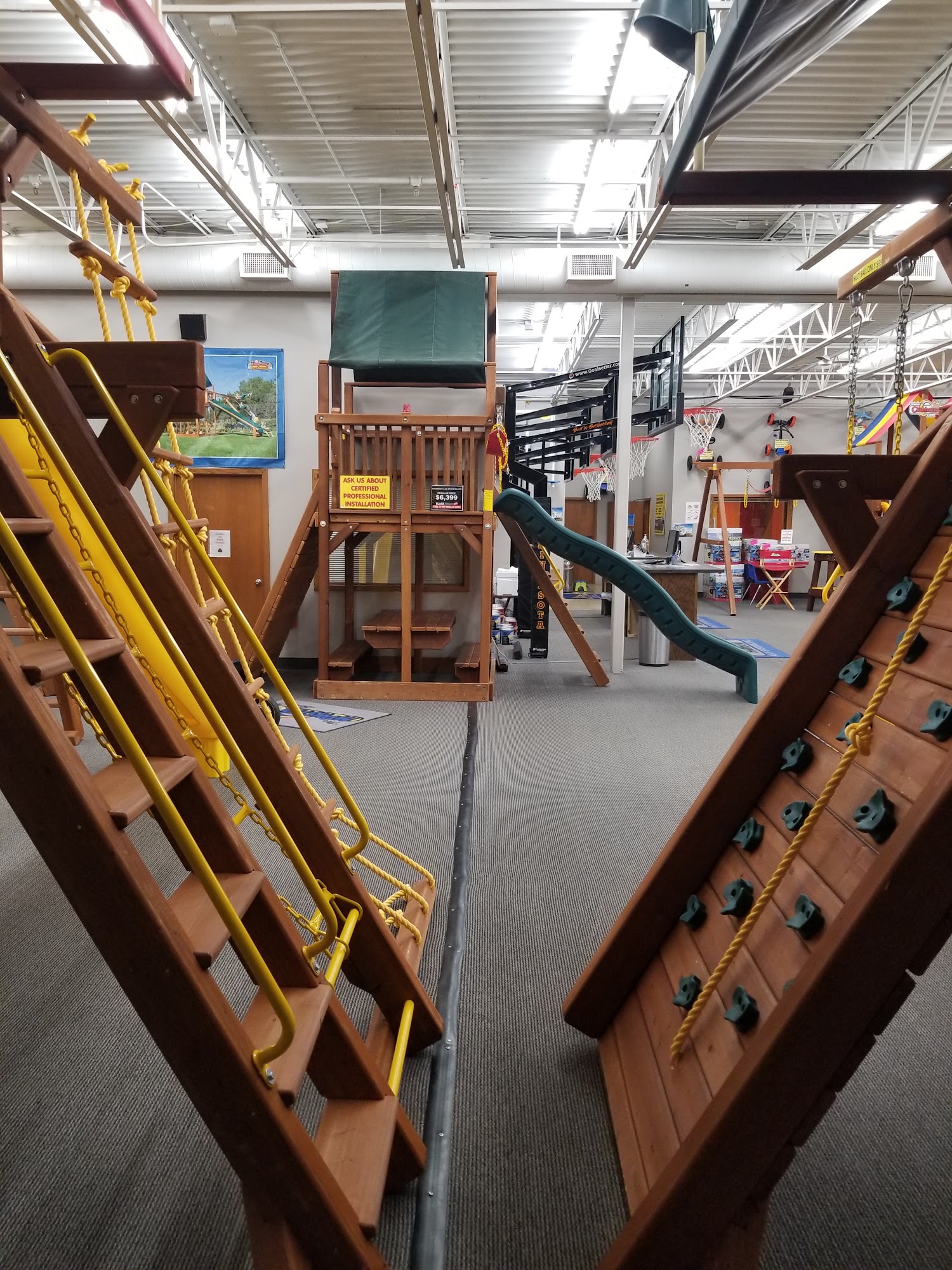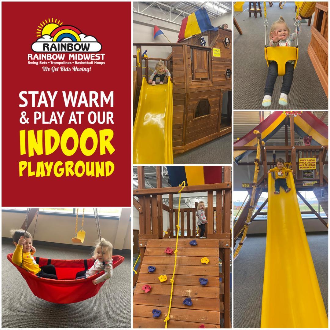 Welcome to Rainbow Midwest! Discover our showrooms in Minnesota and South Dakota. In Minnesota, explore Rainbow Midwest Bloomington and Rainbow Midwest St. Cloud. In South Dakota, find us at Rainbow Midwest Sioux Falls. Our Bloomington showroom serves Twin Cities, Rochester, Albert Lea, Winona, and La Crosse, Wisconsin areas. We specialize in playground equipment: Rainbow Swing Sets, Goalsetter Basketball Hoops, Springfree, Vuly, & AlleyOOP Trampolines, FlexCourt Athletic Courts, Floor Coatings, Rubber Mulch for Swing Sets. Host your child's birthday party at our showroom or let them enjoy our indoor playgrounds while testing out our play equipment!