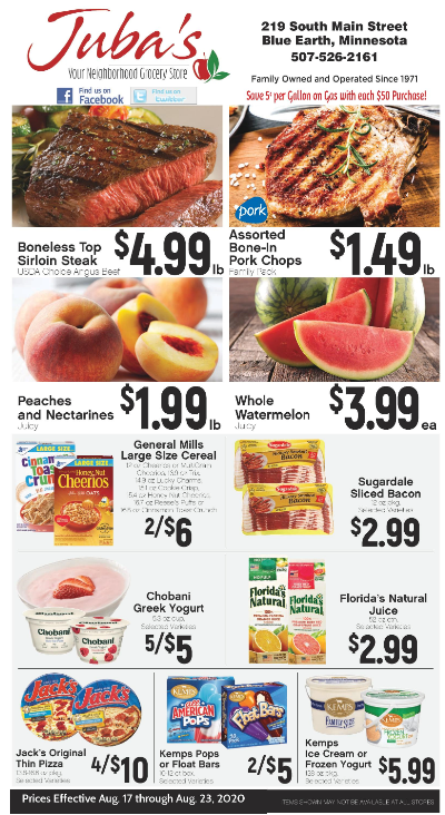 We were quarantined at home for a few weeks. Juba's would take my grocery list on Wednesday mornings and do the shopping. All I had to do was drive up, pop the trunk and they load it in. Our family really appreciates having such a great store in our town.