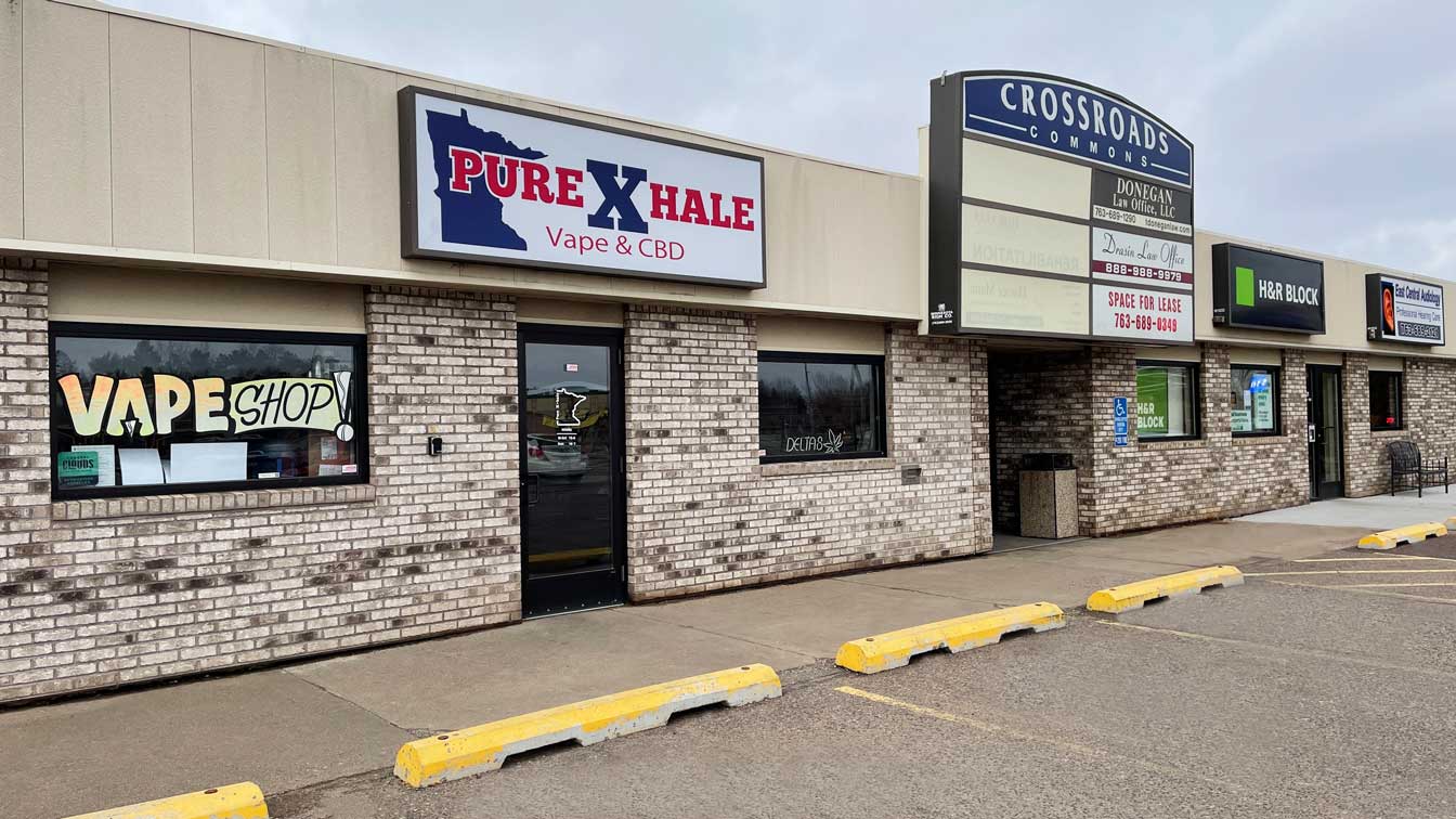 Pure Xhale is a Vape Shop, Tobacco Shop & Licensed Cannabis Dispensary stocked with a HUGE selection of Delta 𝚫9, products (gummies, disposables, carts, drinks & more), CBD oils, CBD creams, CBD gummies & many other CBD products, mods, vape pens, pipes, roll-your-own-tobacco, accessories & so much more. We're located in the CROSSROAD COMMONS Shopping Complex at 1001 1st Avenue East • Ste 130, Cambridge, MN 55008. Stop on in, our friendly, knowledgeable staff is here to assist you with product selection.