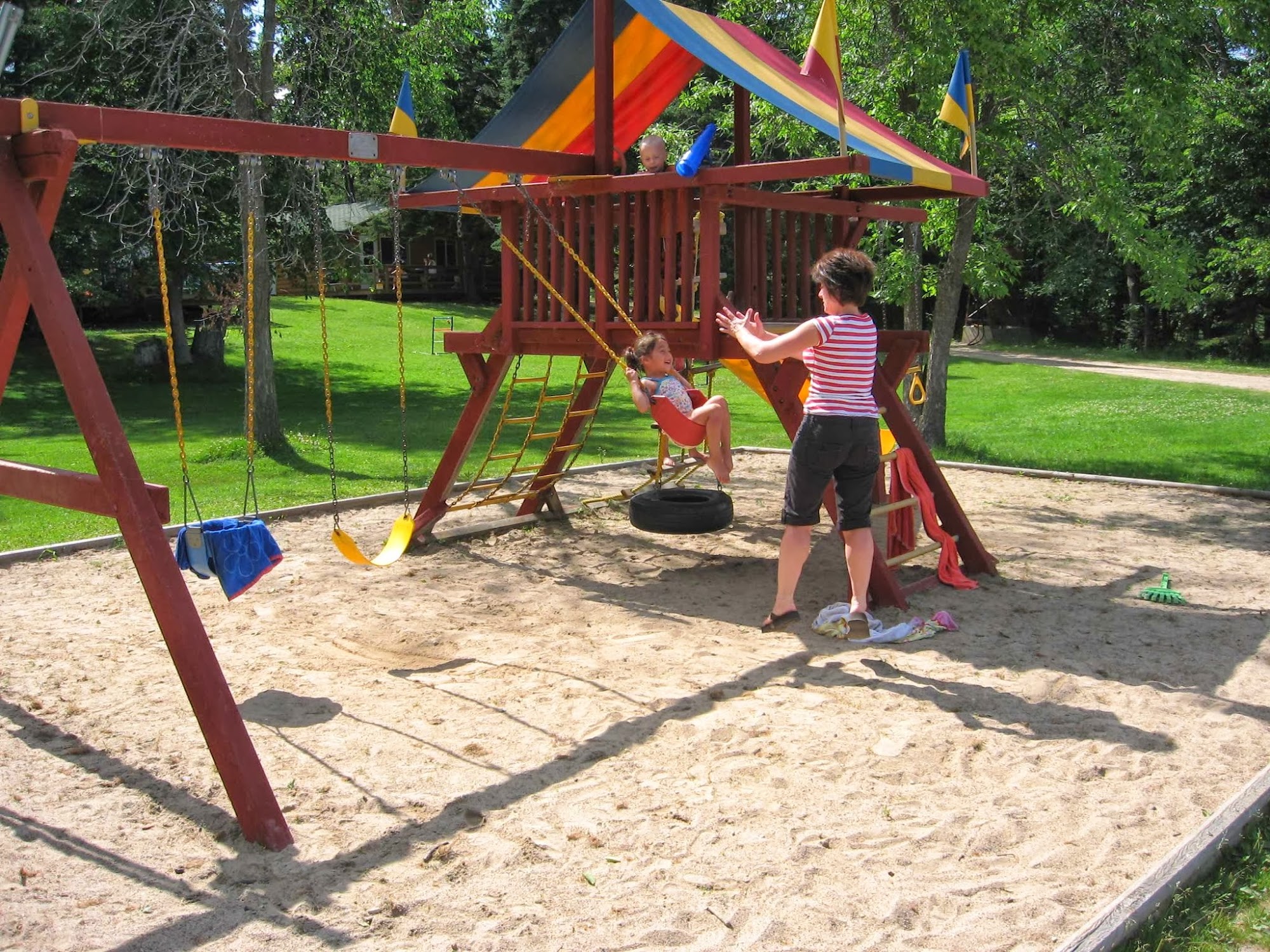 Great resort. Nice beach and play area for children. Lovely cabins with big decks. Plenty of dock space. Great views of the lake from your cabin.