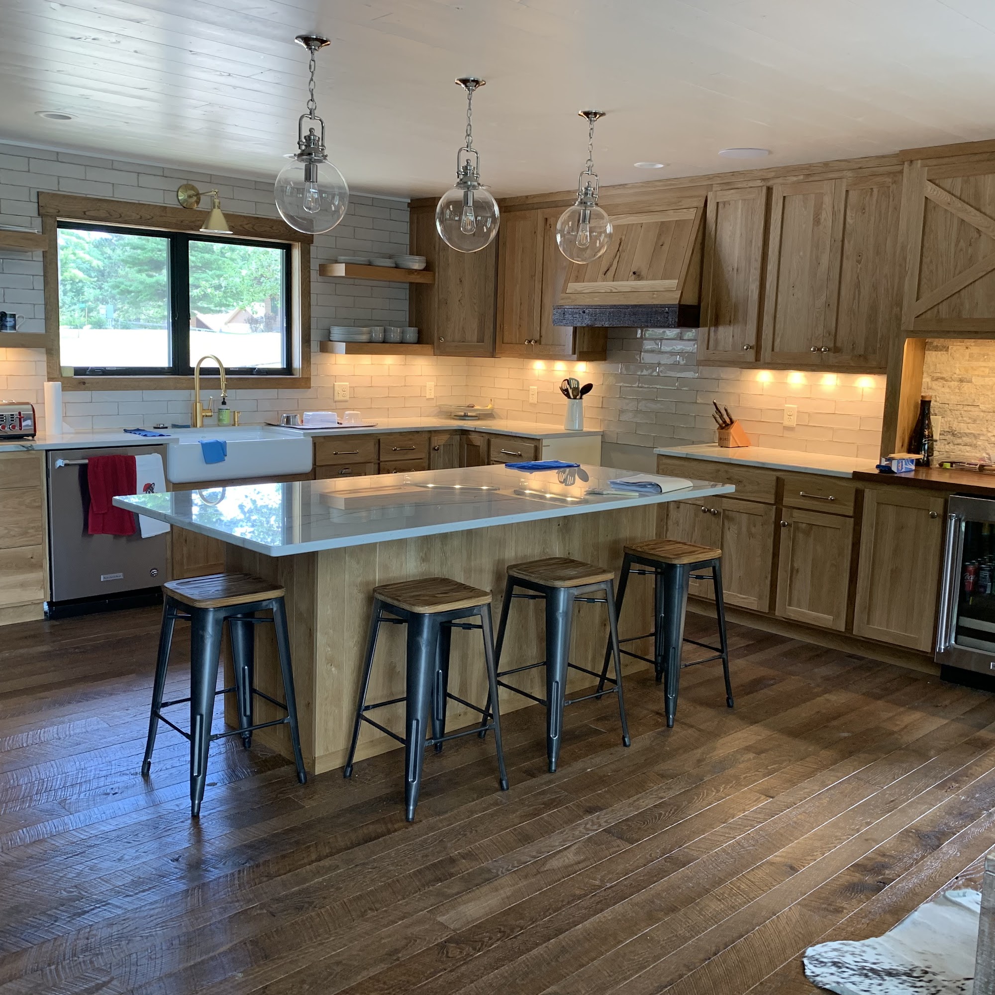 Frontier Cabinets installed new cabinets in our lake cabin this week. My wife asked me if I still liked them and I said no, I love them! We feel very lucky to have the opportunity to fit into their schedule for these beautiful rustic cabinets.