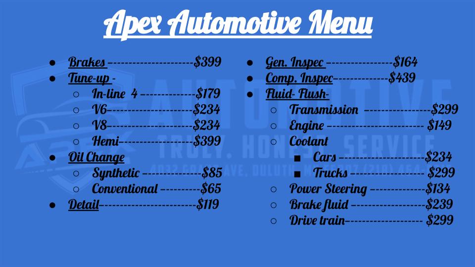 Mike and his team are awesome at Apex. Fair pricing and good work. Very honest shop